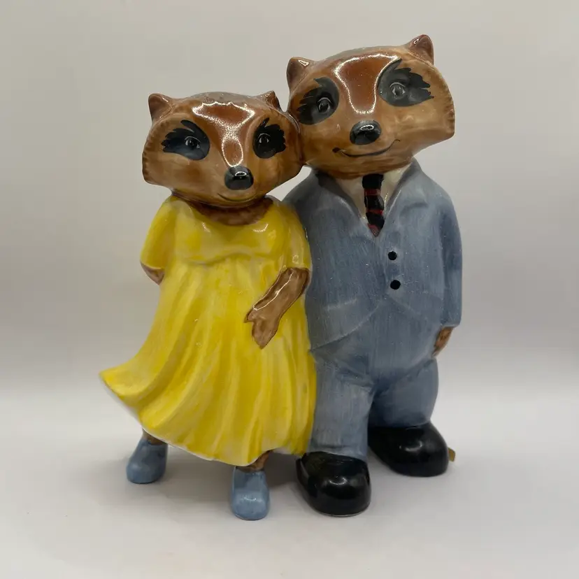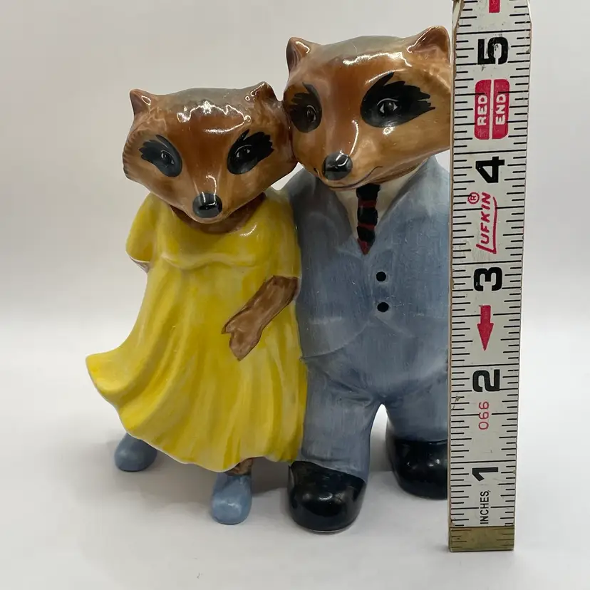 Adorable Raccoon Couple, no chips or cracks. 5" tall by 4.25" wide