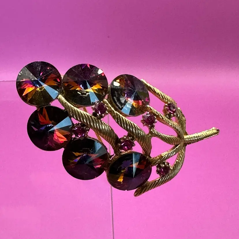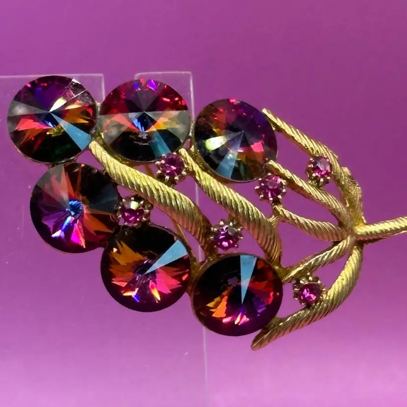 Vintage Rivoli Cranberry Red Gold Tone Brooch