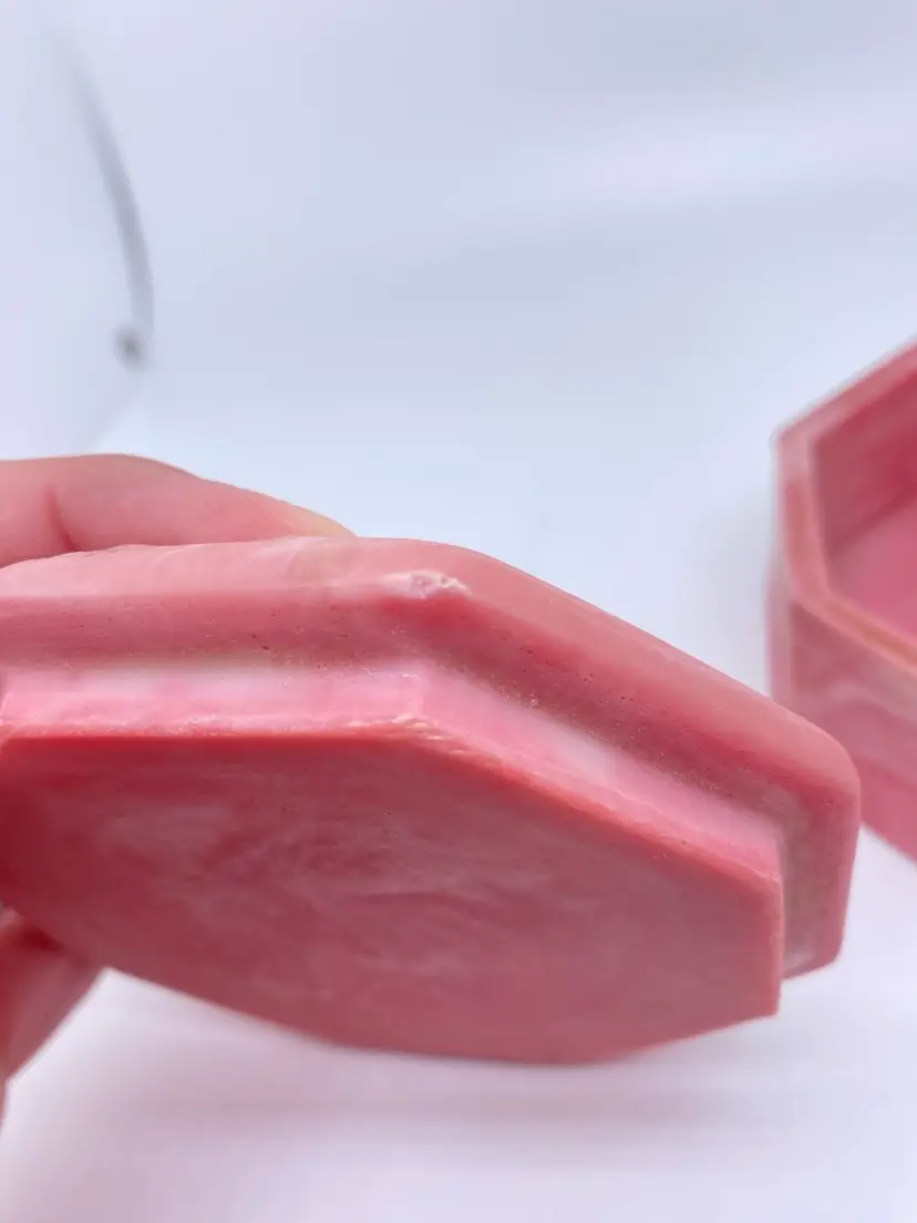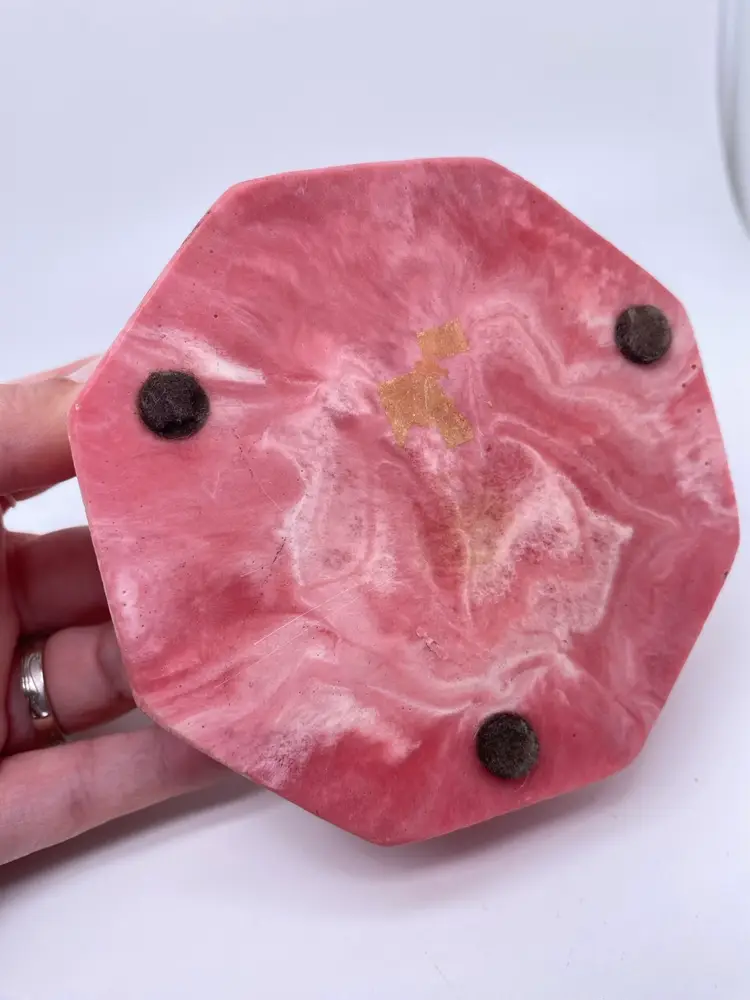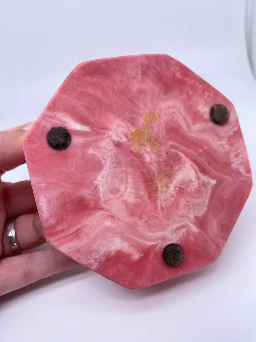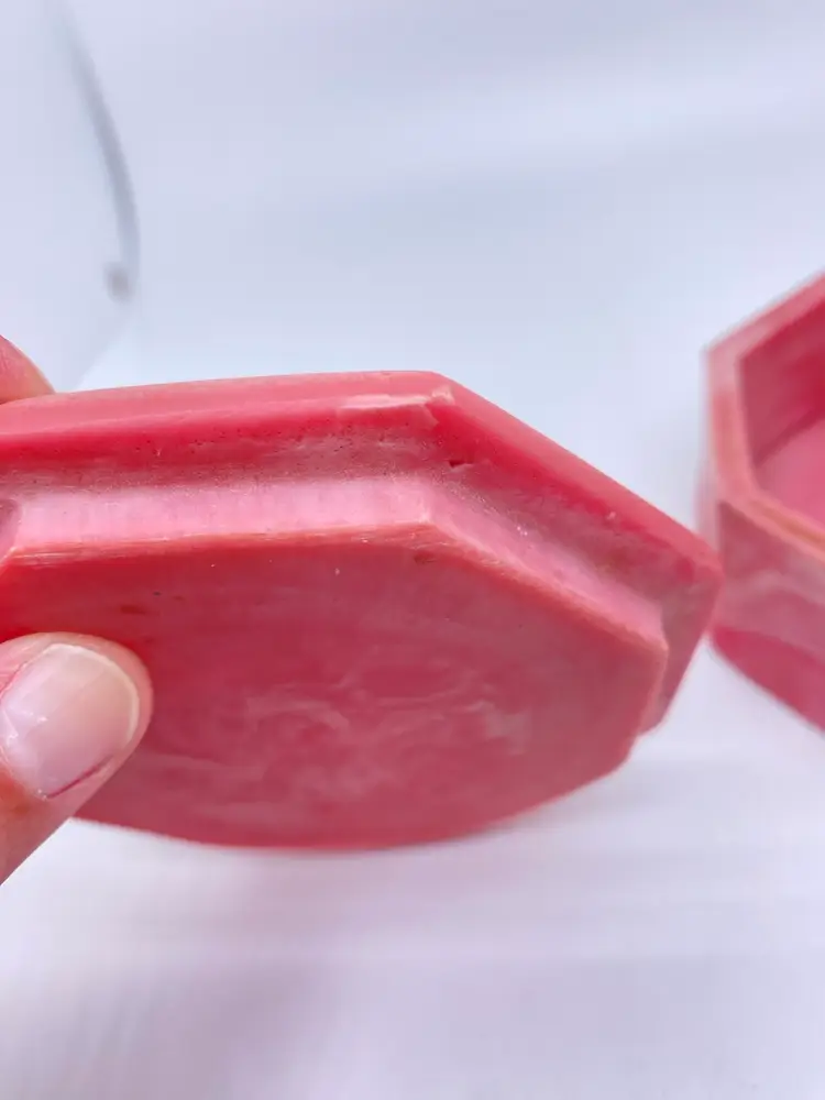 Vintage soapstone pink rose trinket box by Robert Nemith. Signed on lid. Has a couple of dings