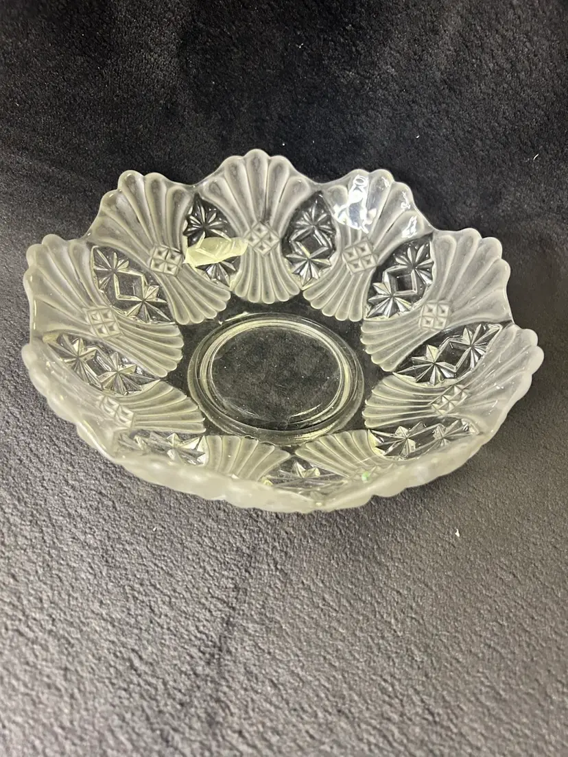 The vintage Robinson Glass EAPG Vera Pattern glass bowl from 1893 is a collectible piece of early American pattern glass. Featuring a clear color and pressed glass production technique, this original Victorian-era bowl is a rare find for collectors of antique glassware. Made by Robinson Glass in the United States, this bowl showcases the intricate Vera pattern and is a key piece from the 19th century, making it a valuable addition to any pottery and glass collection.