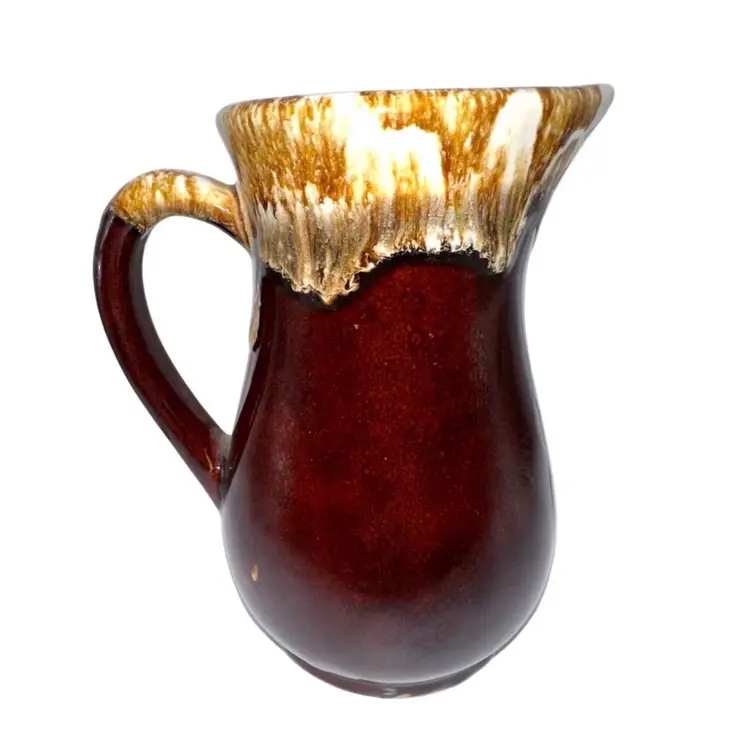 Brown Drip Pitcher/Jug by RRP Robinson Ransbottom Pottery in Roseville, OH. No chips or cracks. There is a spot of missing glaze at the base, shown in photos. I believe this was during manufacturing process as the area is smooth.