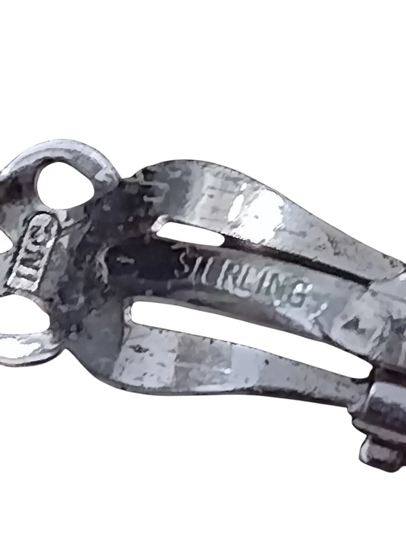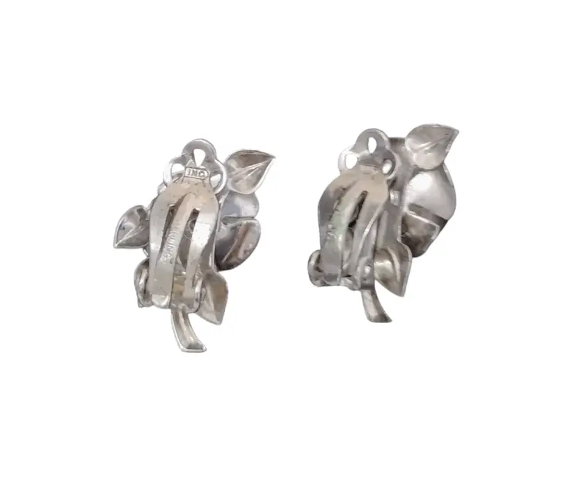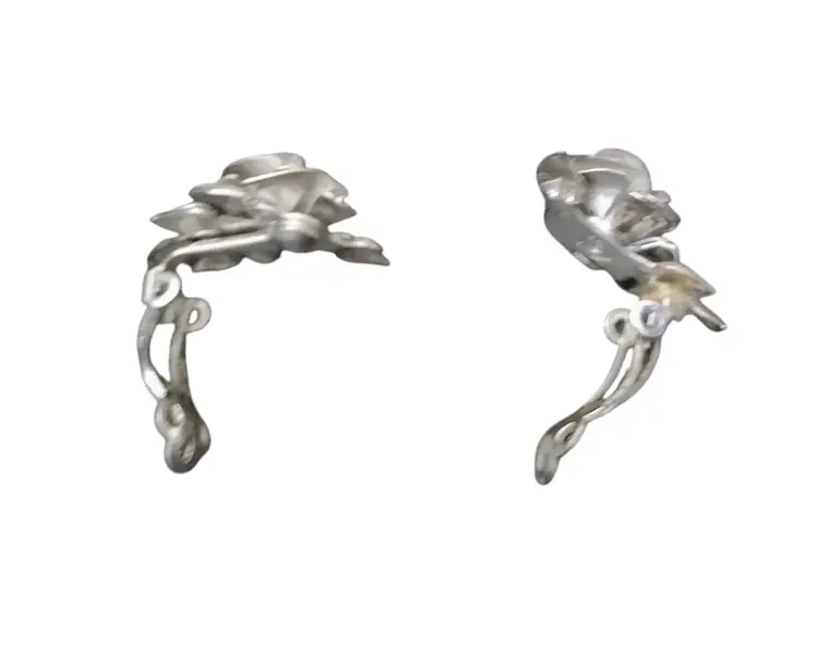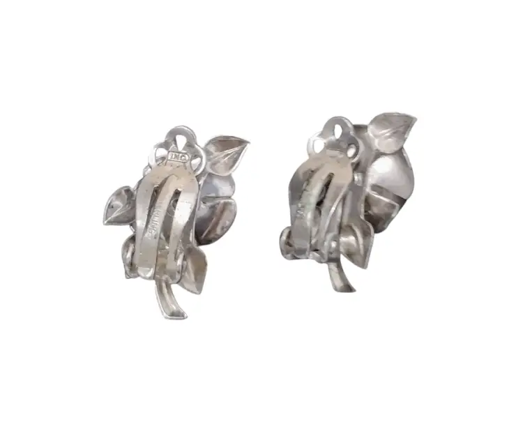 These are very pretty Sterling Silver rose clip on earrings in a brushed silver. These are feminine & romantic & would be great for many occasions. Earrings measure 1" long x .60" wide.