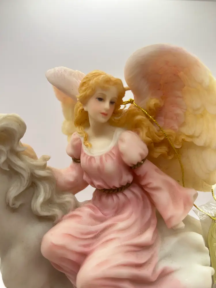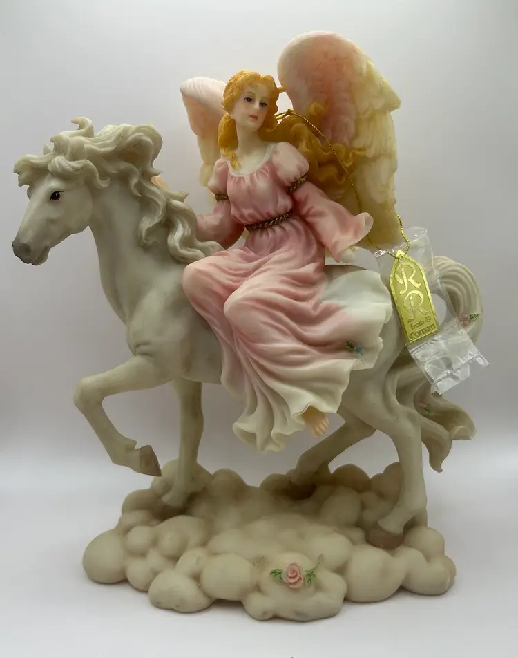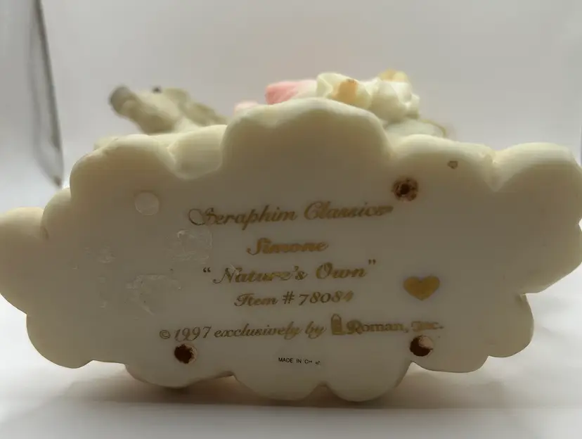 This is a beautiful figuring from the Seraphim Classics collection. This is Simone nature zone item number 78084. She stands 8 1/2 inches tall and 7 1/2 inches wide. There are no chips or cracks. I believe she has made some sort of resin, but I’m not 100% sure on that.