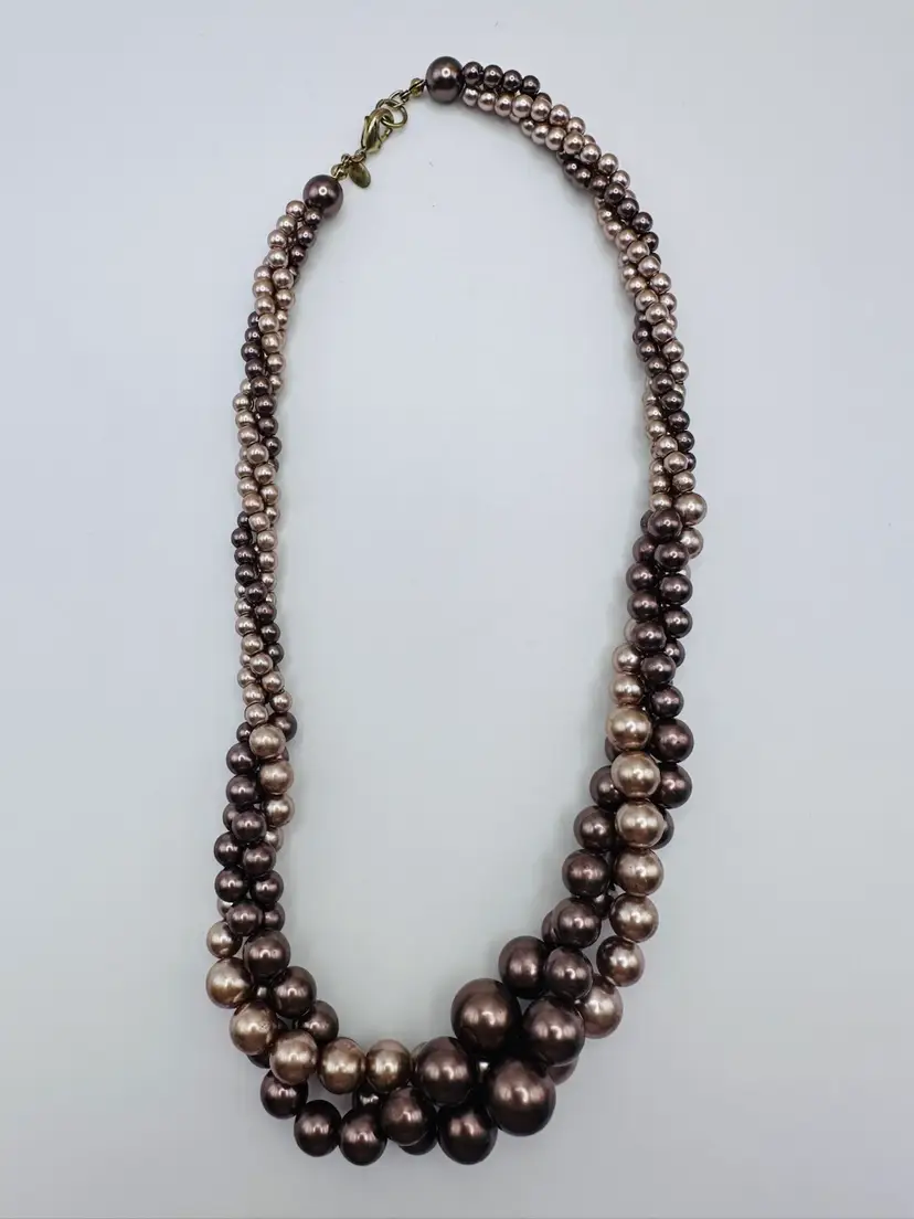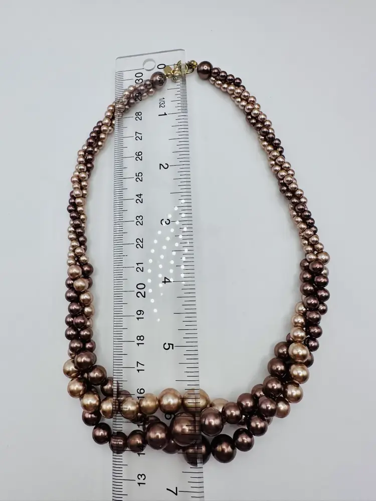 The Vintage Roman Brown Triple Strand Torsade Faux Pearl Necklace is a stunning piece of jewelry perfect for women who appreciate classic and timeless style. This 18-inch necklace features three brown acrylic strands with gold tone beads and a lobster closure for easy wear. The vintage Roman brand adds a unique touch to this beaded necklace, making it a standout accessory for any outfit. Perfect for those who love unique and stylish pieces that are signed by the maker, this necklace is sure to become a favorite go-to accessory.