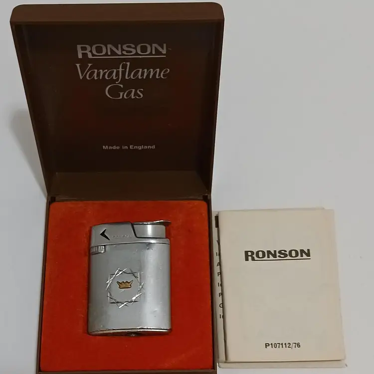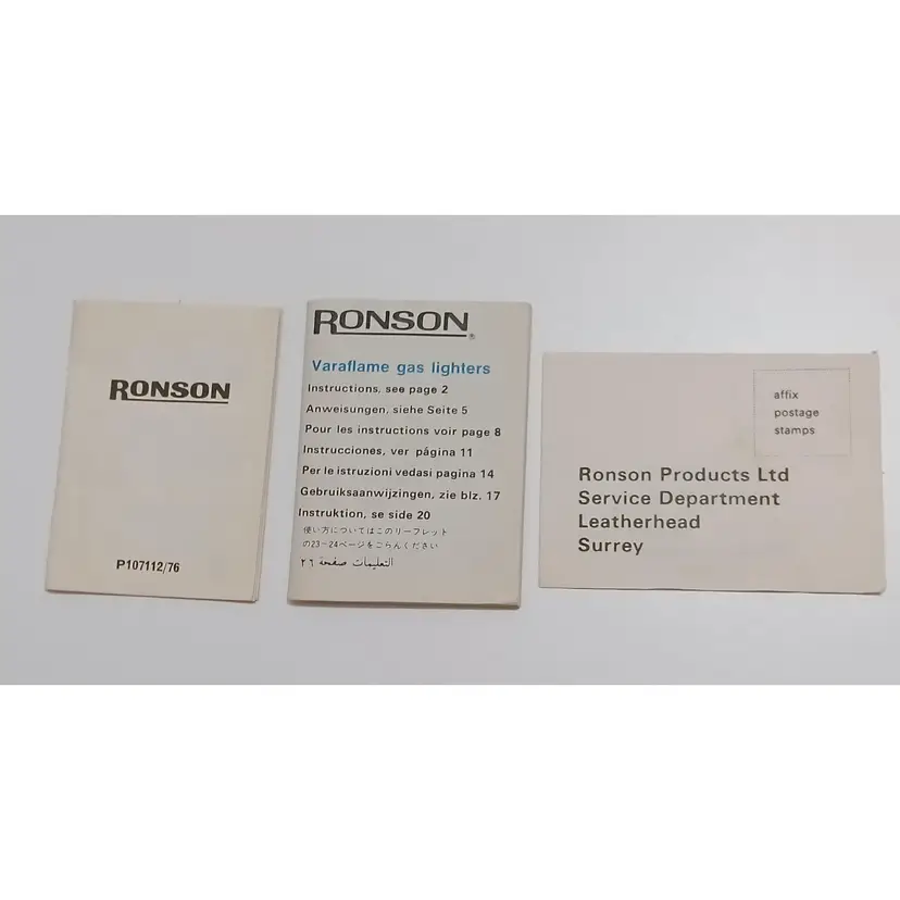 Vintage Ronson Lighter With Original Box And Literature; The box and literature are in excellent condition; the lighter shows a lot of wear; good for parts; Box could complete your display or add to your collection!