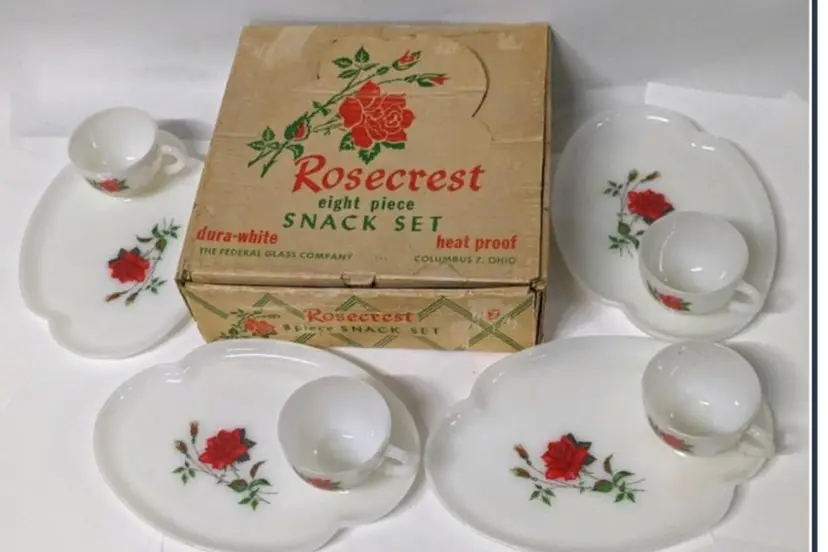 Dishes and cups are in excellent condition, no chips or cracks noted