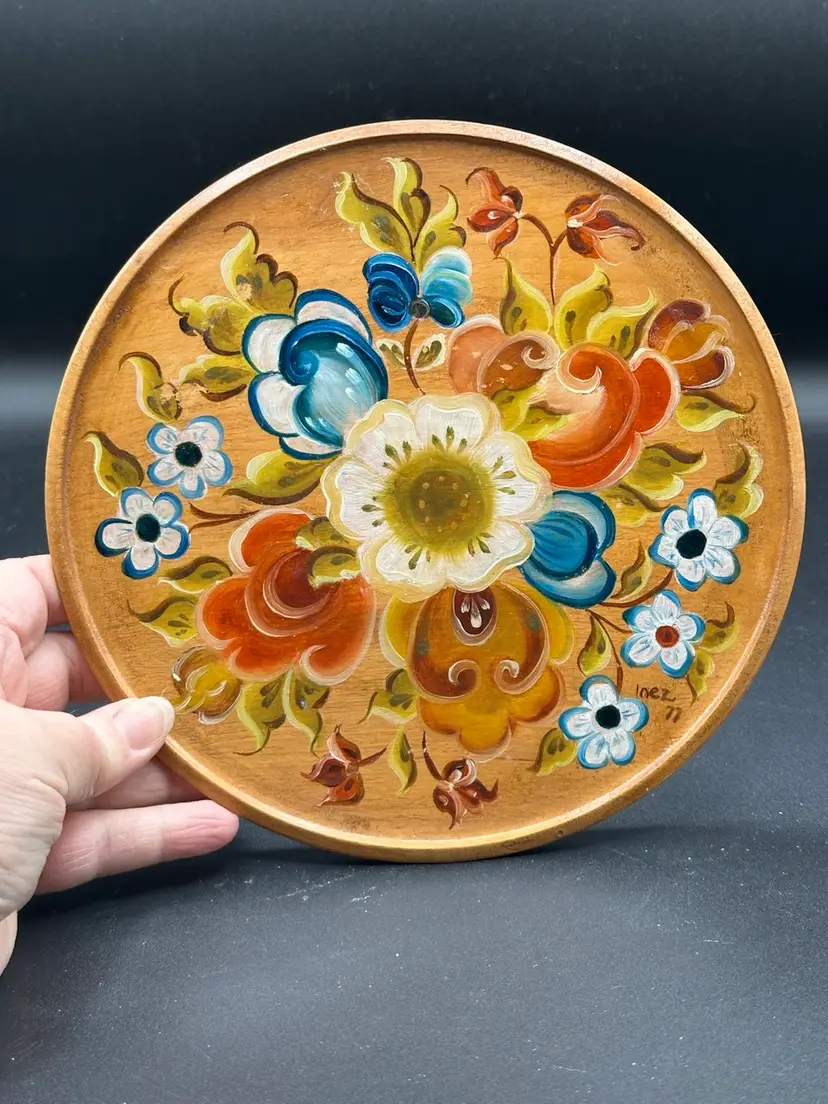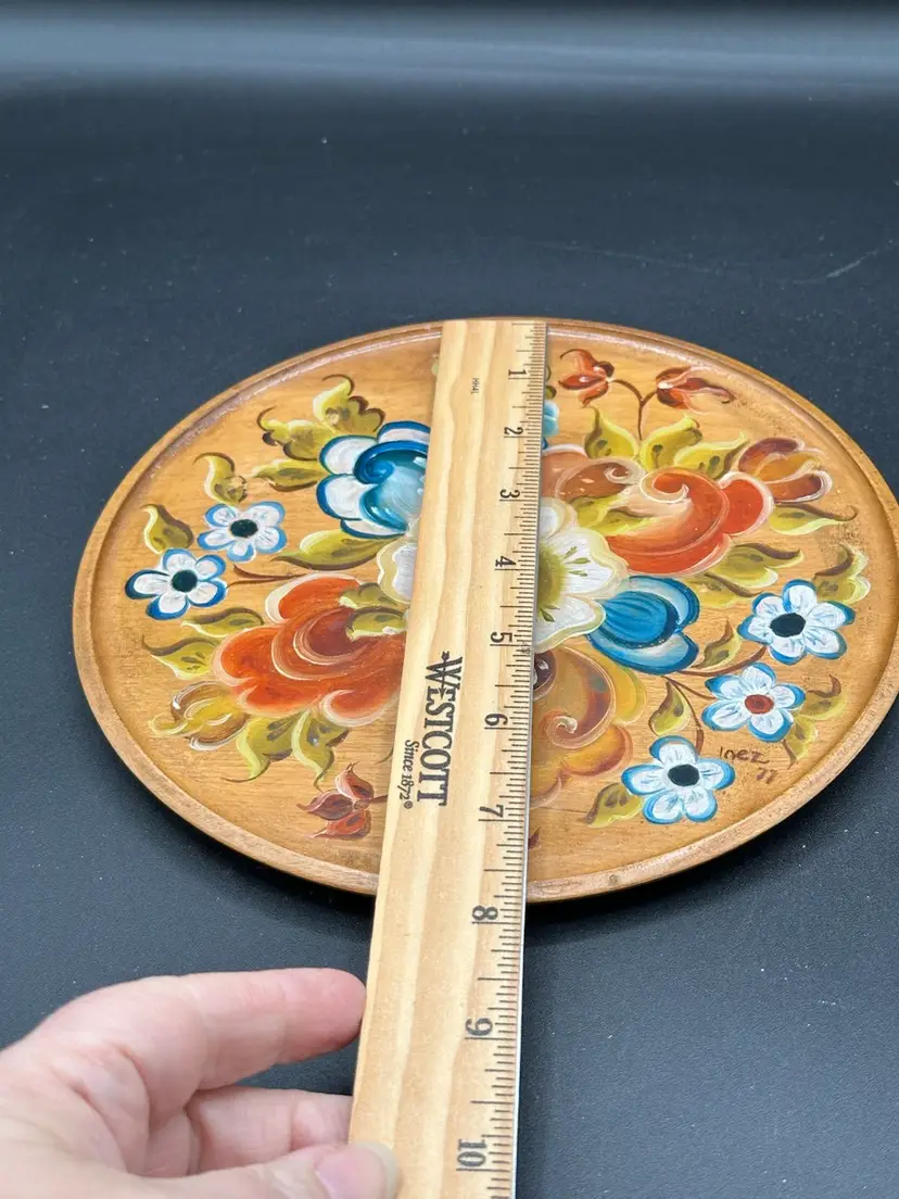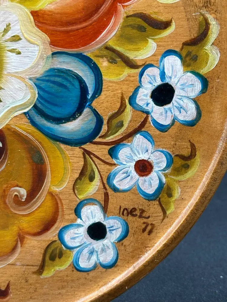 Vintage Rosemaling Floral Wooden Plate Standard Specially Co Japan Signed 1977