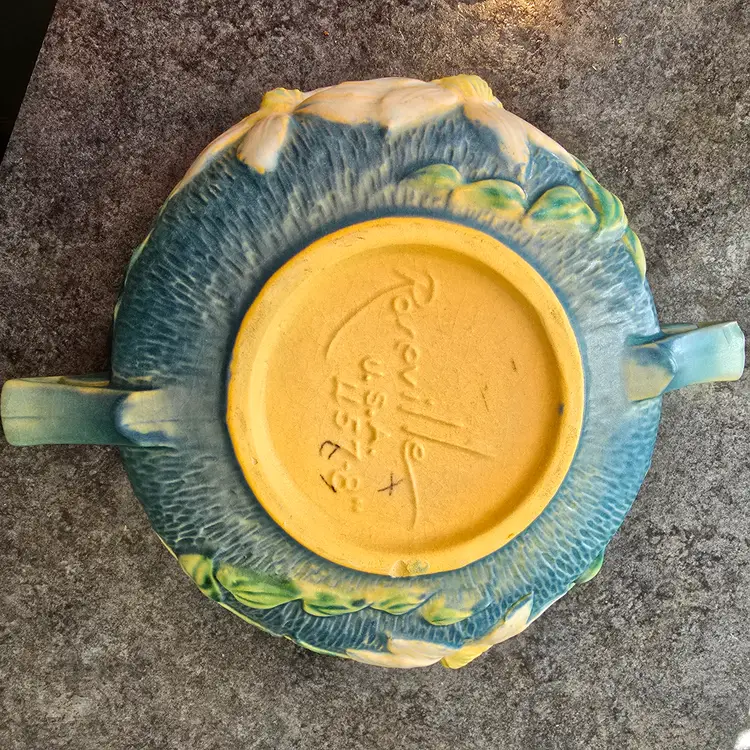 Roseville Pottery Clematis Console Bowl Pink Flowers 457‒8