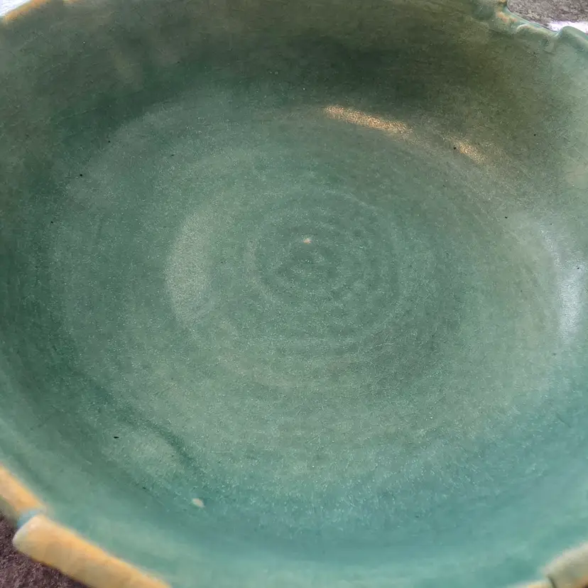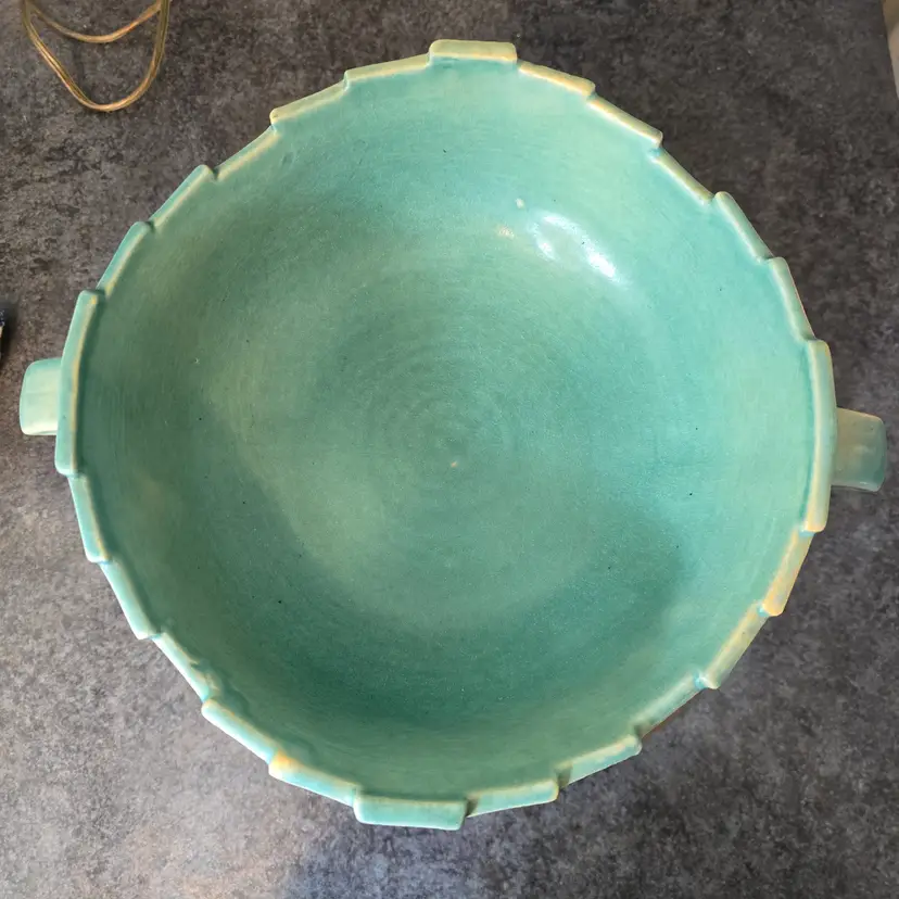 2 small imperfections. 1 small chip on the corner of a handle. 1 small chip on the bottom. Both pictured (last 2 photos). No cracks. Great condition!
