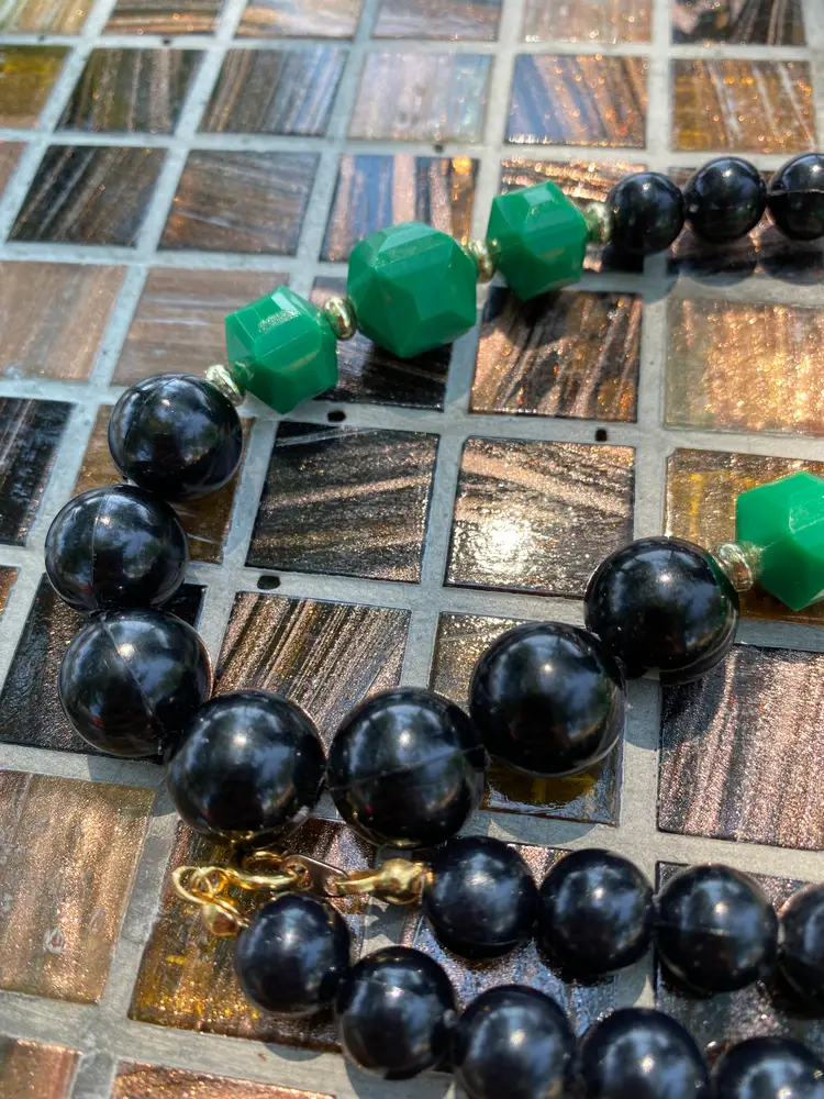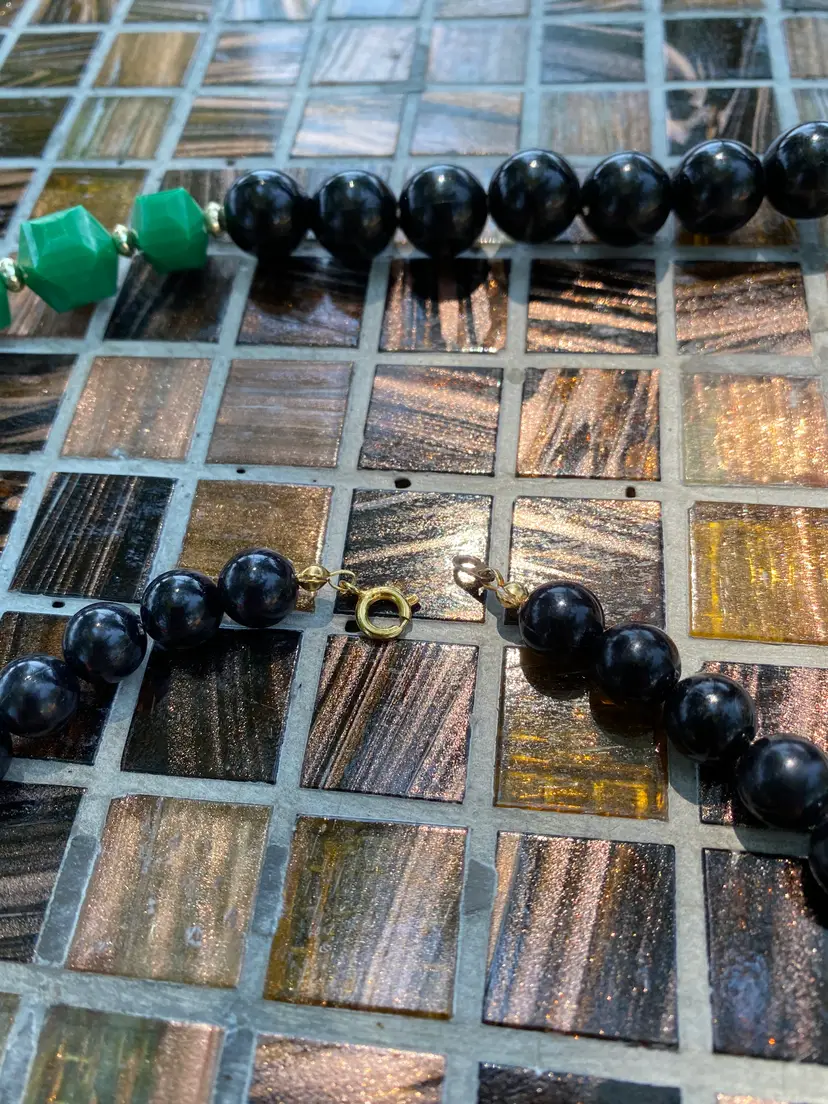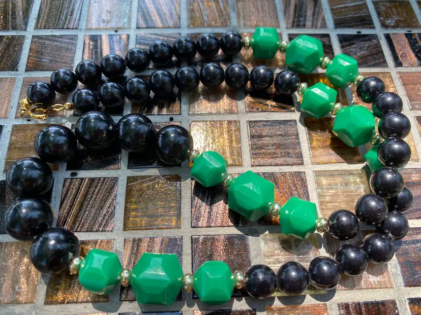 25" Strand Length. No missing or broken beads, common wear throughout. Some Gold Tone on the spacers are flaking, see close up photos.