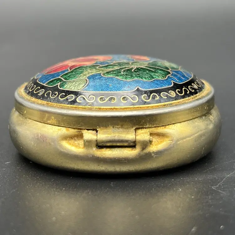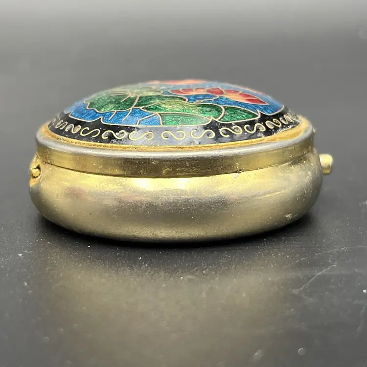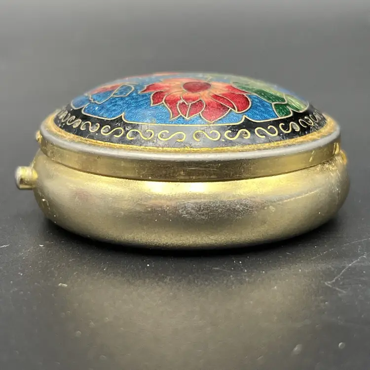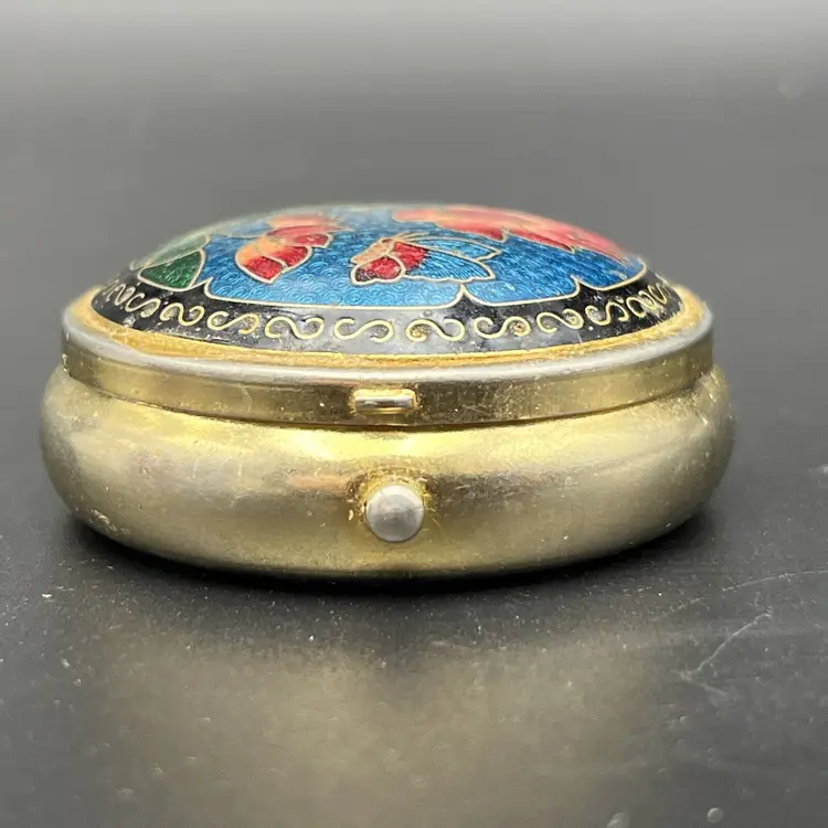 Measures Approx 1 3/4" x 3/4" Feel Free To Contact Me With Any Questions I Do Combine Shipping Pattern: Floral Shape: Round Size: Small Color: Blue Material: Enamel Subject: Butterfly Brand: Unbranded Type: Pill Box Item Height: .75" Country/Region of Manufacture: Unknown Closure Type: Button Finish: Cloisonné Item Width: 1.75"