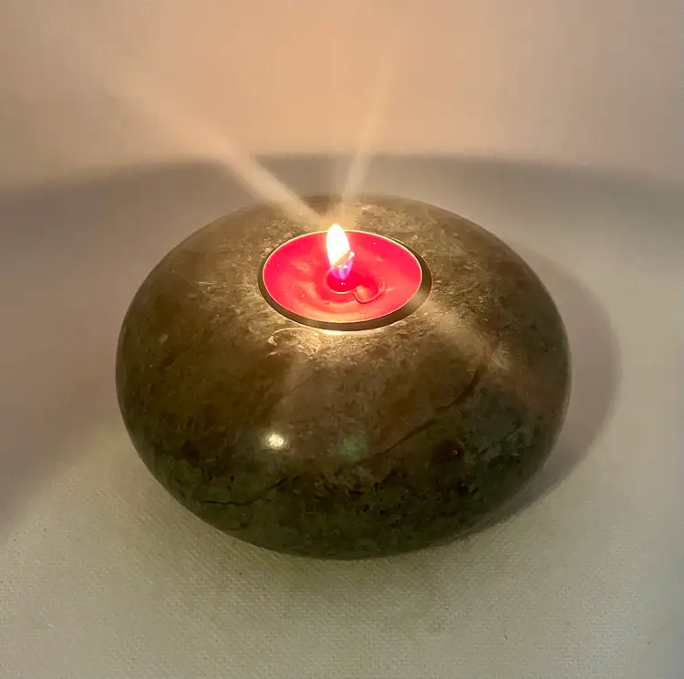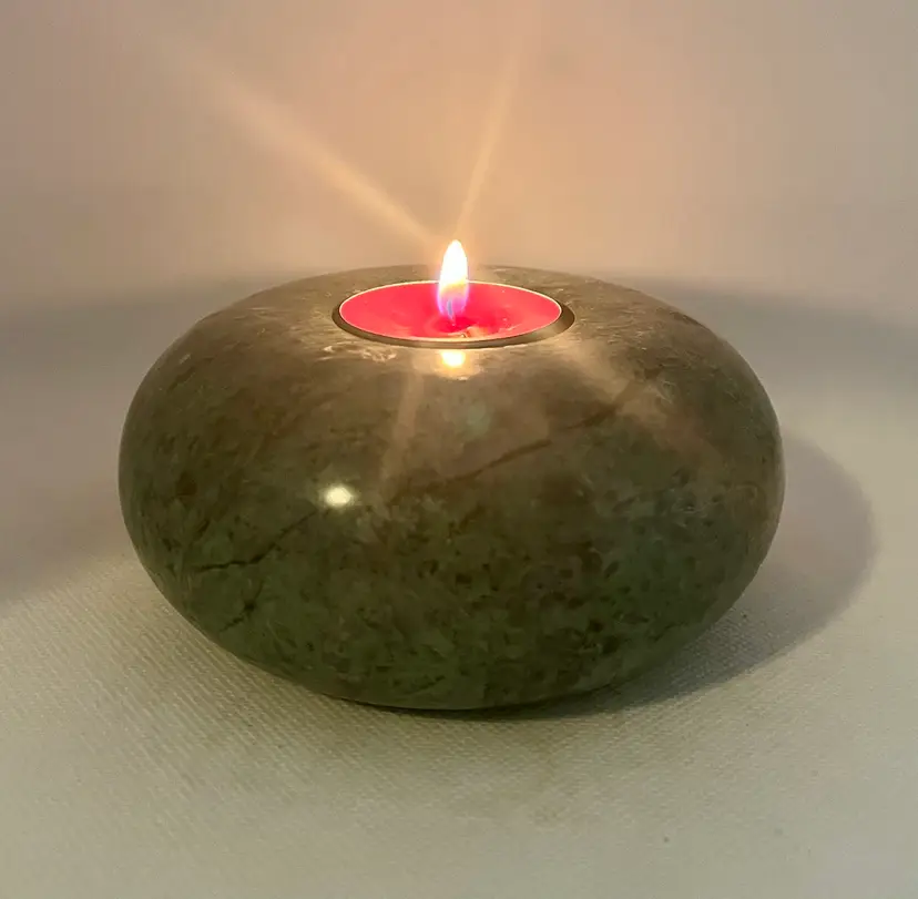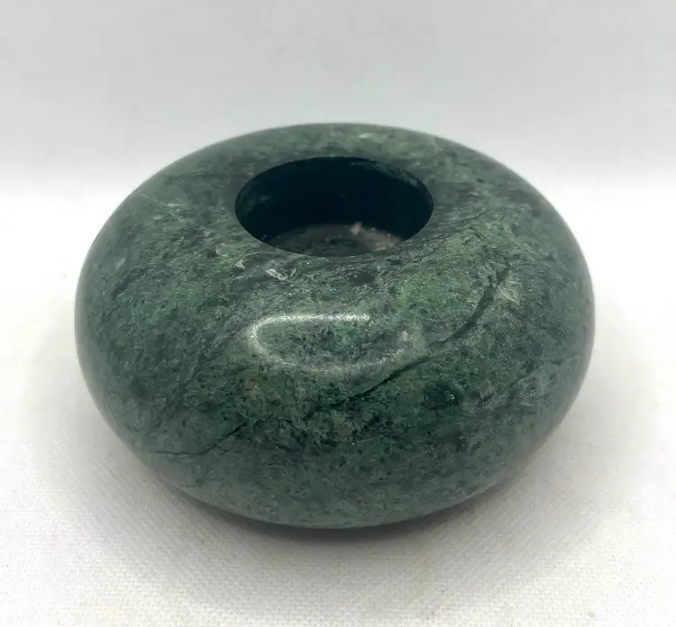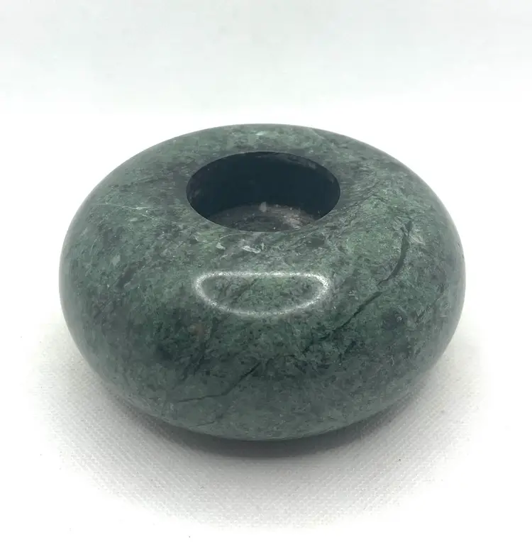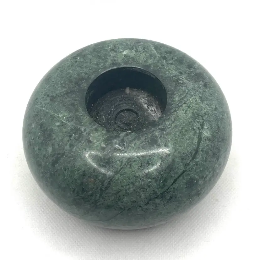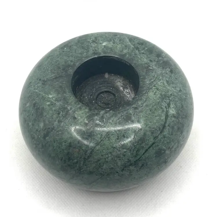 Vintage Round Green Marble Tea Light Candle Holder Paperweight. Minor surface wear and scratches.