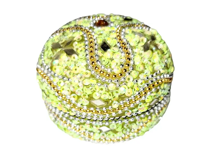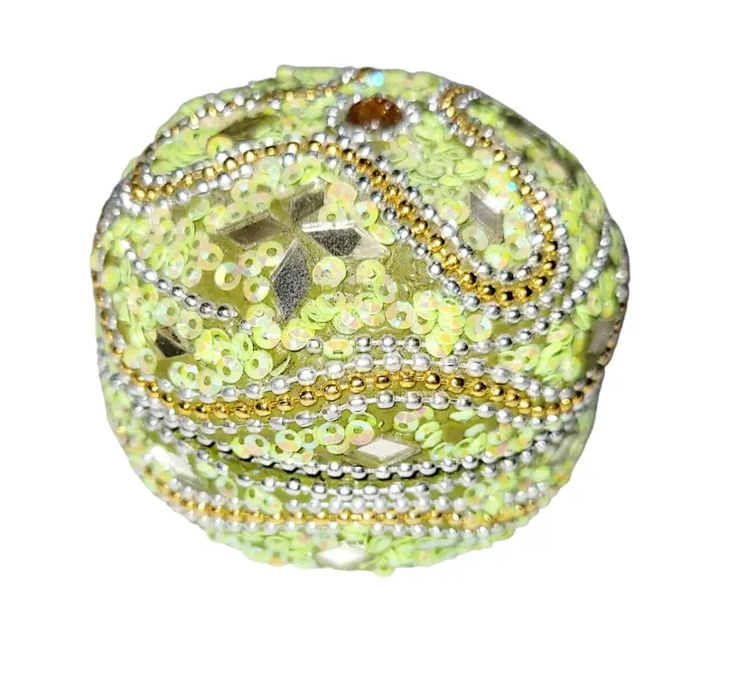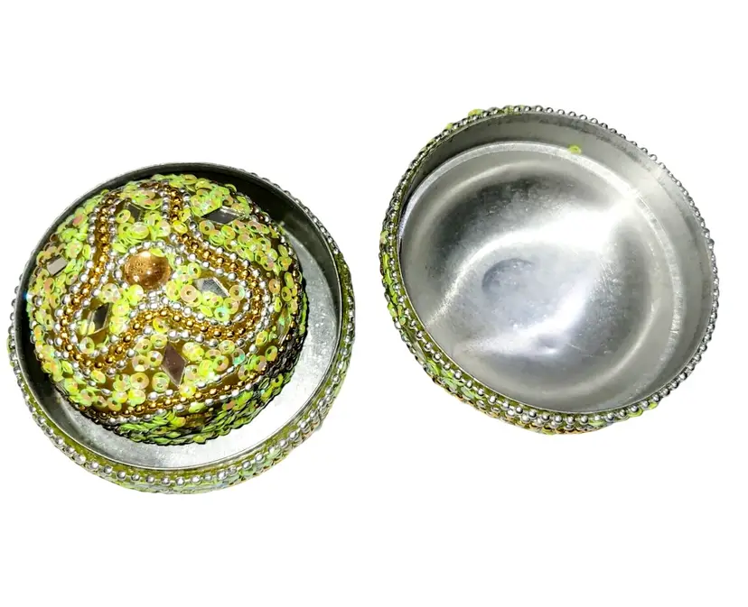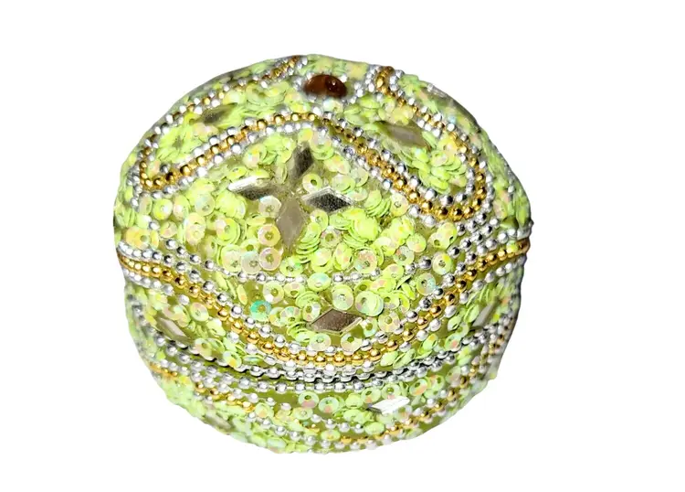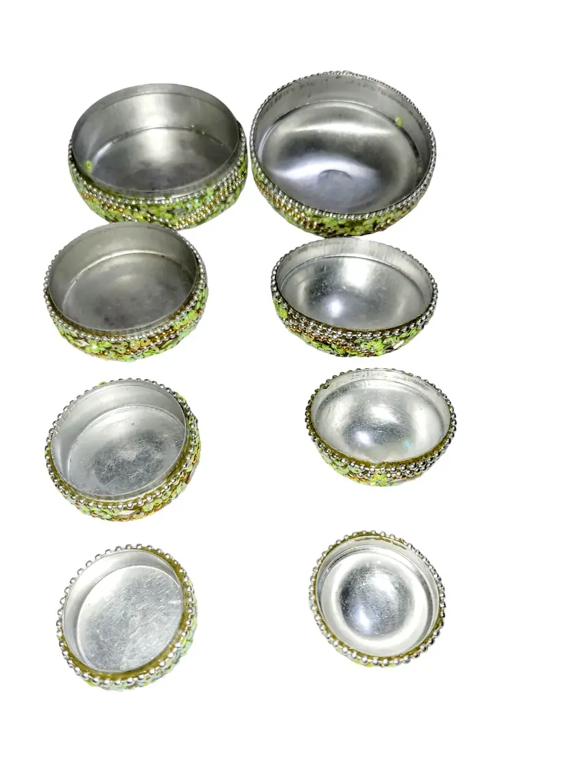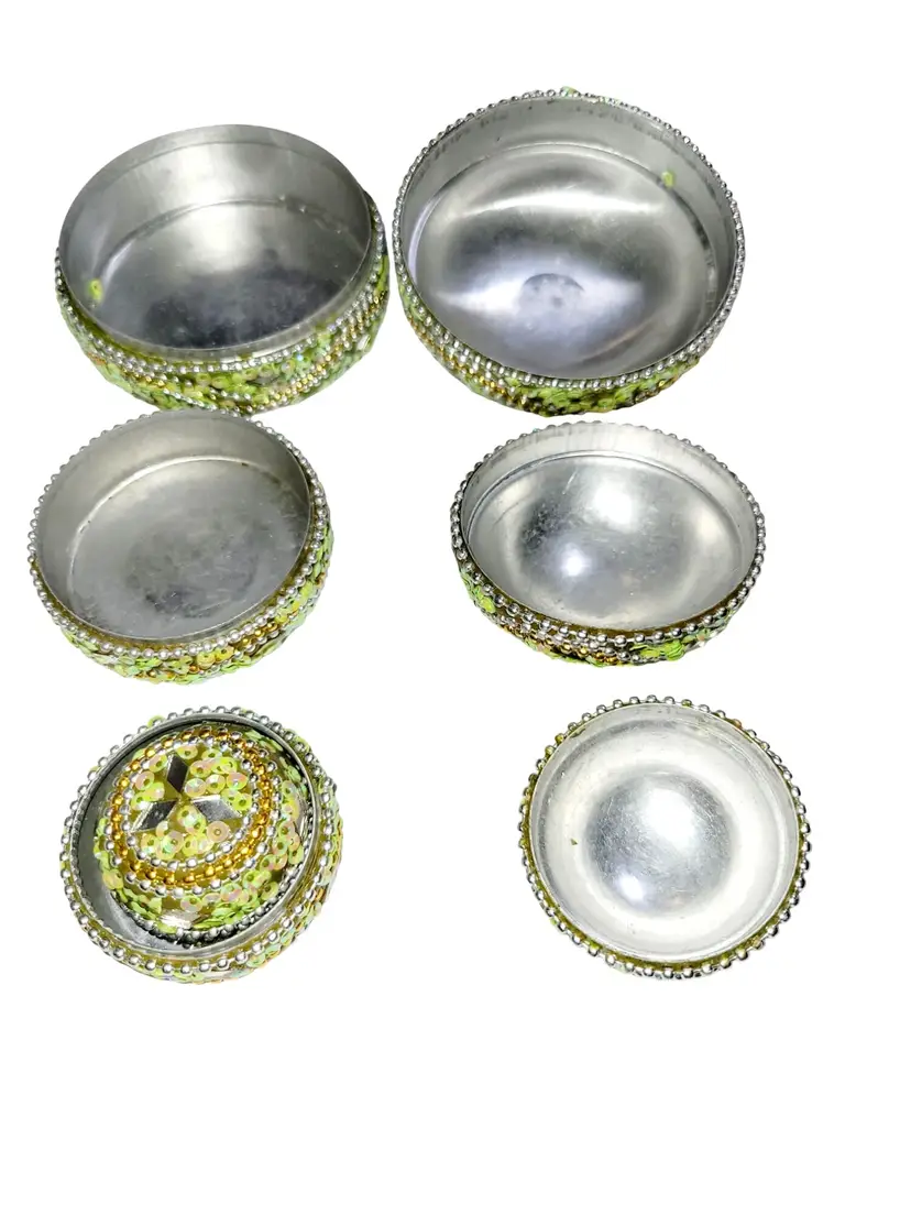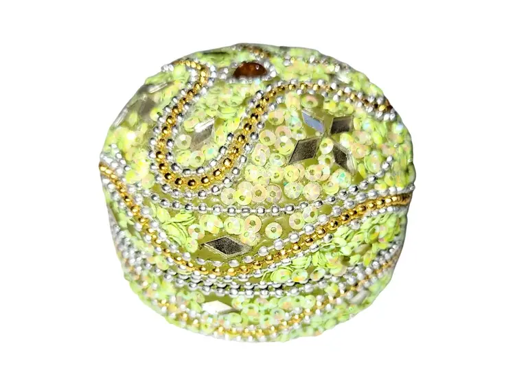 • 4-in-1 nesting design for versatile storage • Detailed green & gold beadwork • Reflective mirrored accents enhance elegance • Compact and lightweight construction • Ideal for jewelry or small keepsakes
