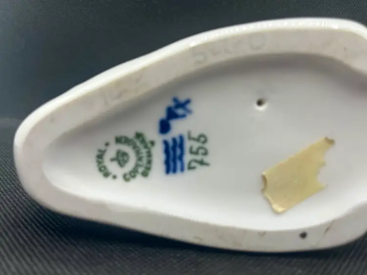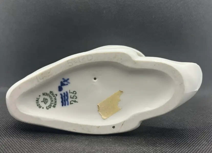 This is a vintage Royal Copenhagen porcelain swan figurine, model number 755.