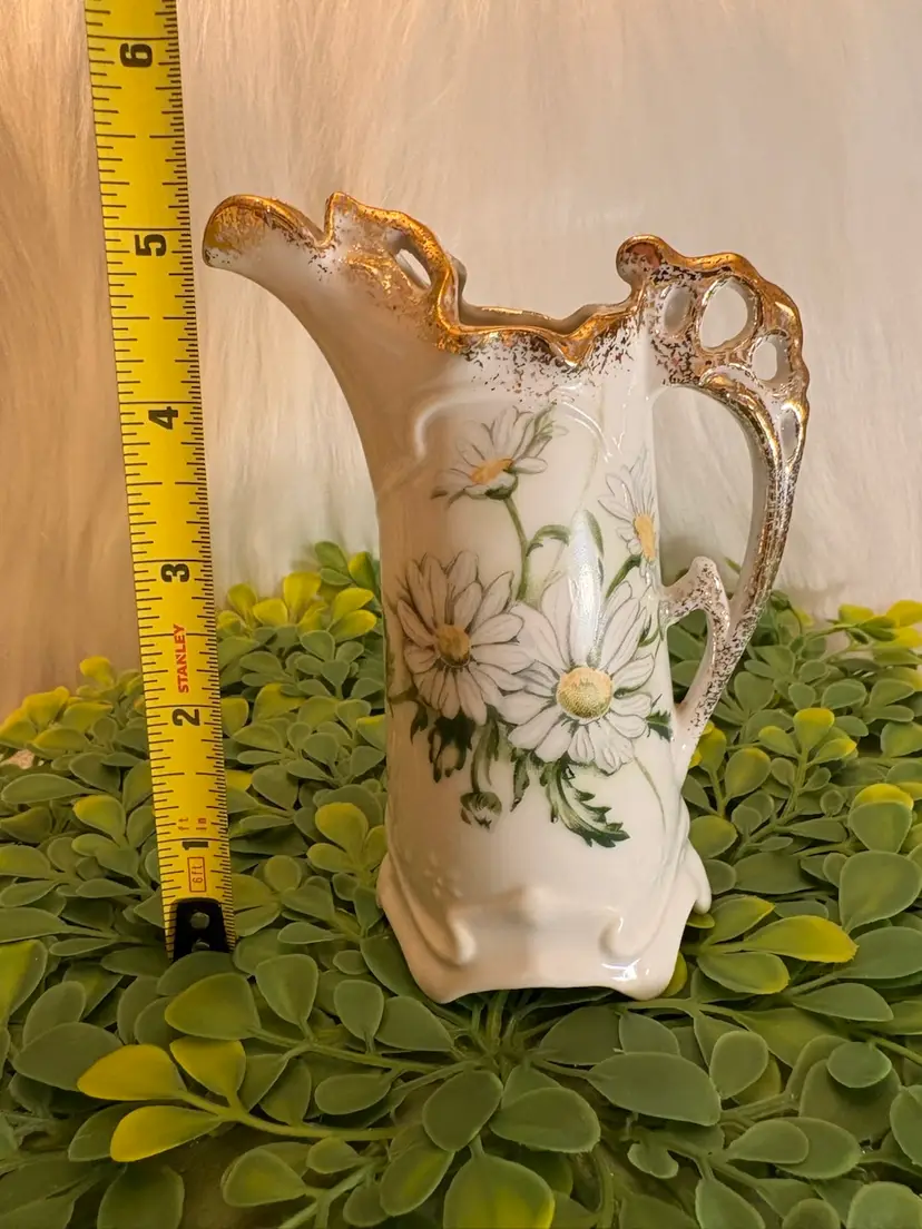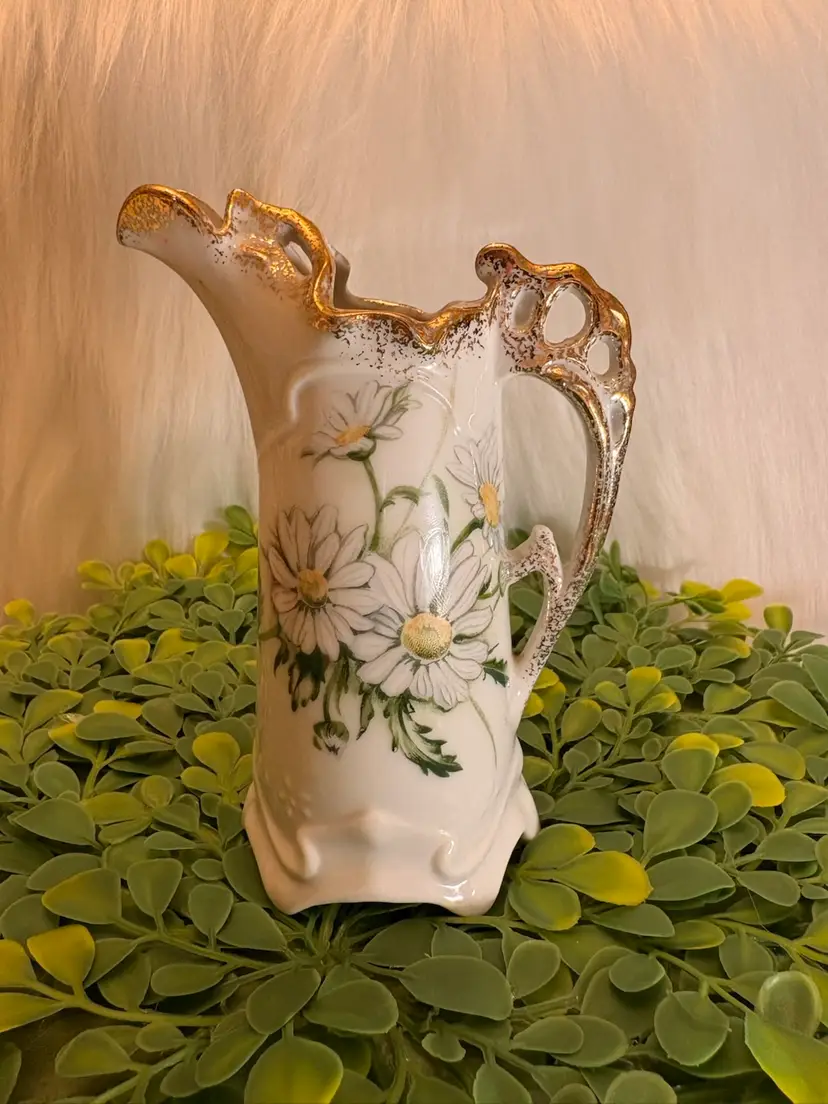 Vintage Royal Crown Porcelain Hand-Painted Mini Pitcher with daisies & gold trim 5”, excellent condition
