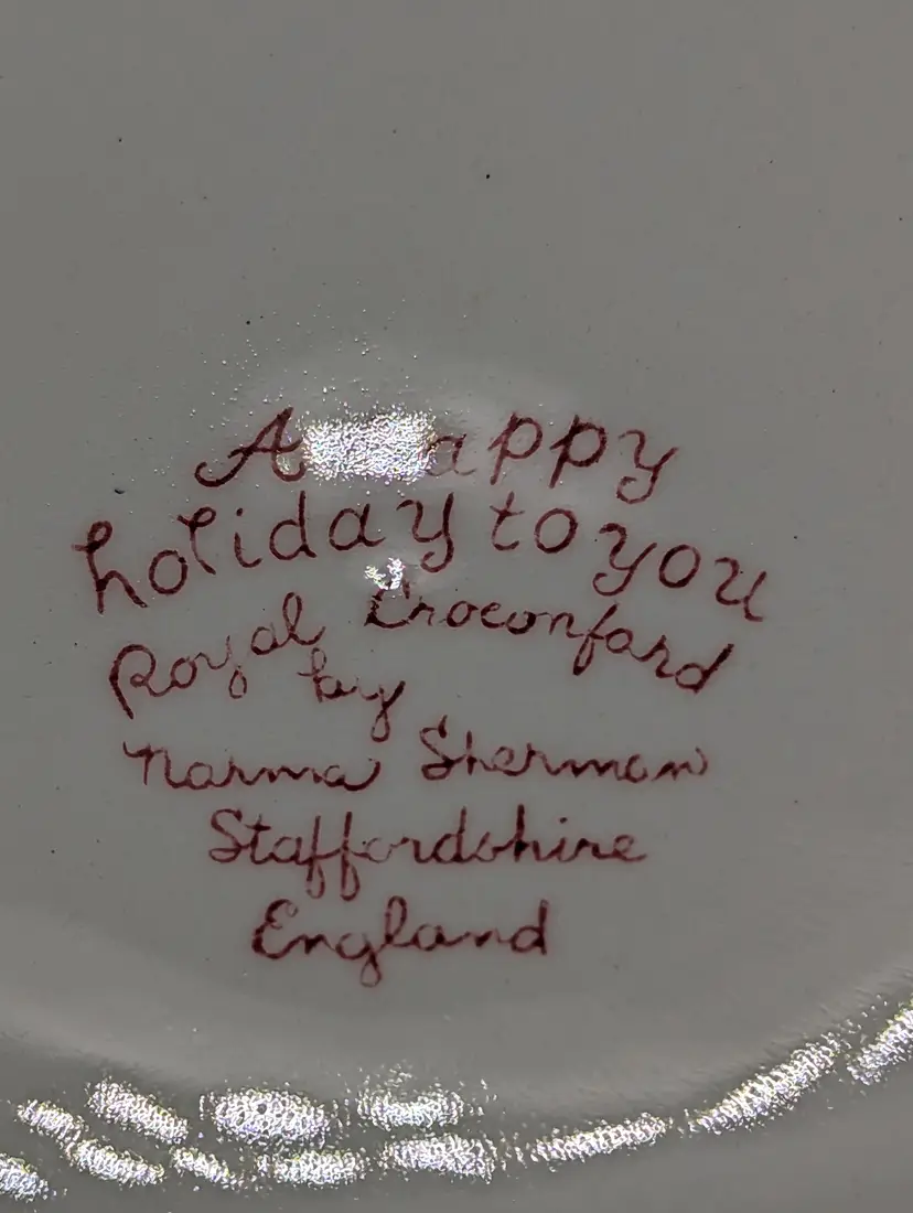 This is a lovely Vintage Royal Crownford 1986 Merry Christmas Plate by Norma Sherman Vintage Transferware. No chips or cracks. Please see all pictures for condition and measurements.