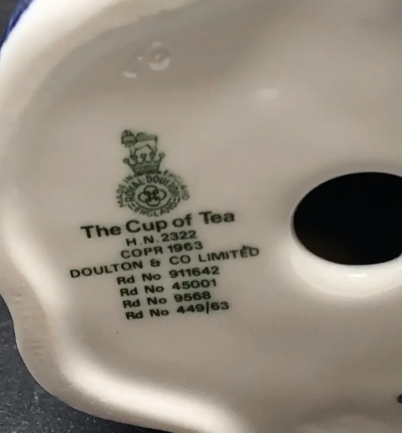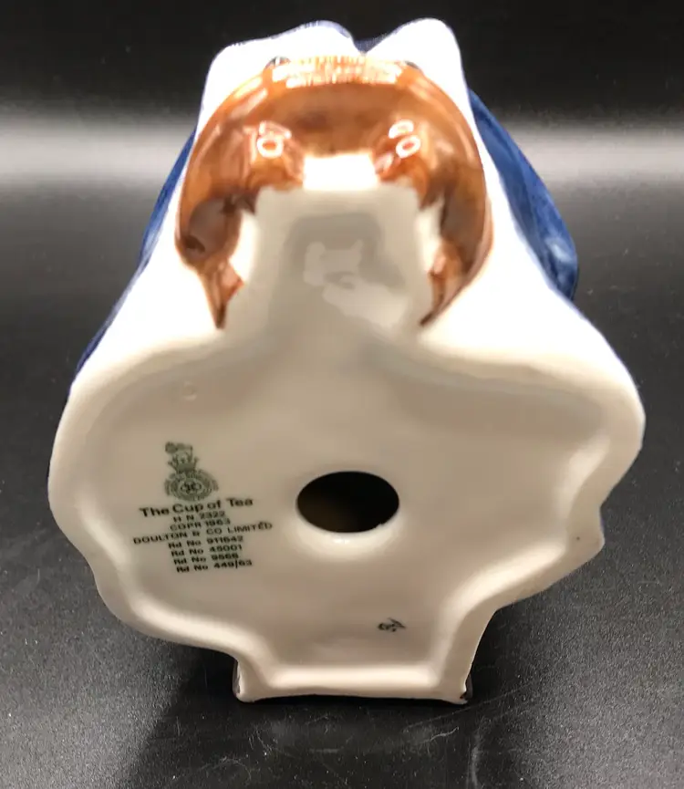 This vintage Royal Doulton 1963 The Cup of Tea figurine, model number HN 2322, is a medium-sized porcelain collectible featuring a woman as the subject. Hand painted with a multicolor design, this limited edition piece comes unboxed and is a unique addition to any collection. Made in the United Kingdom during the 1960s, this figurine captures the elegance and charm of the tea-drinking tradition, making it an ideal centerpiece for a party or display in a home. No chips or cracks and in great displayed condition