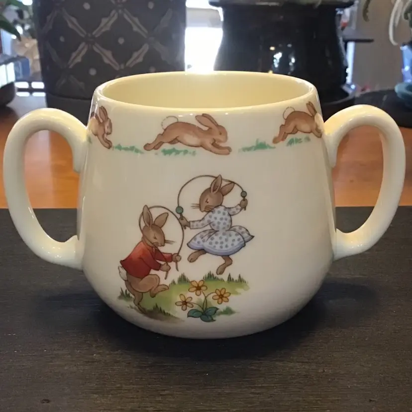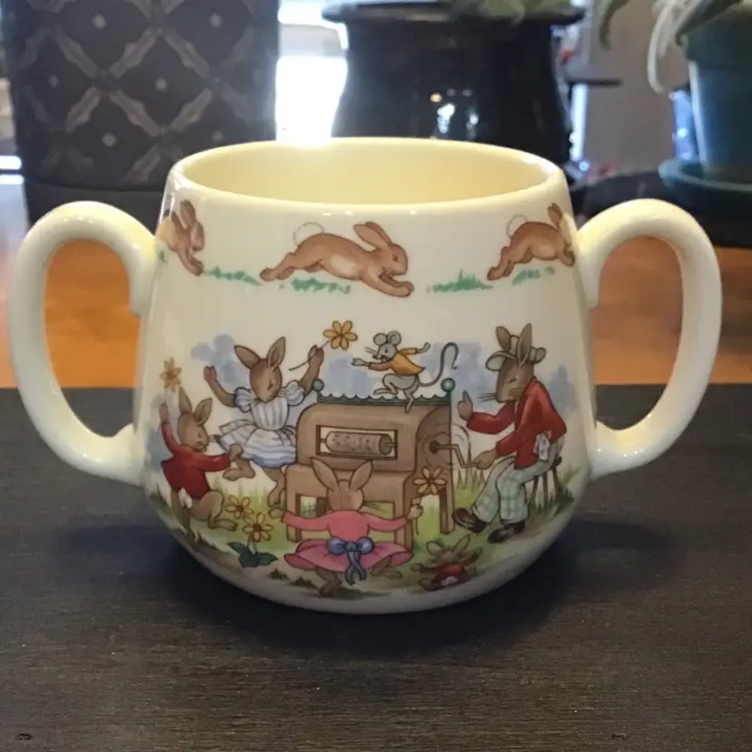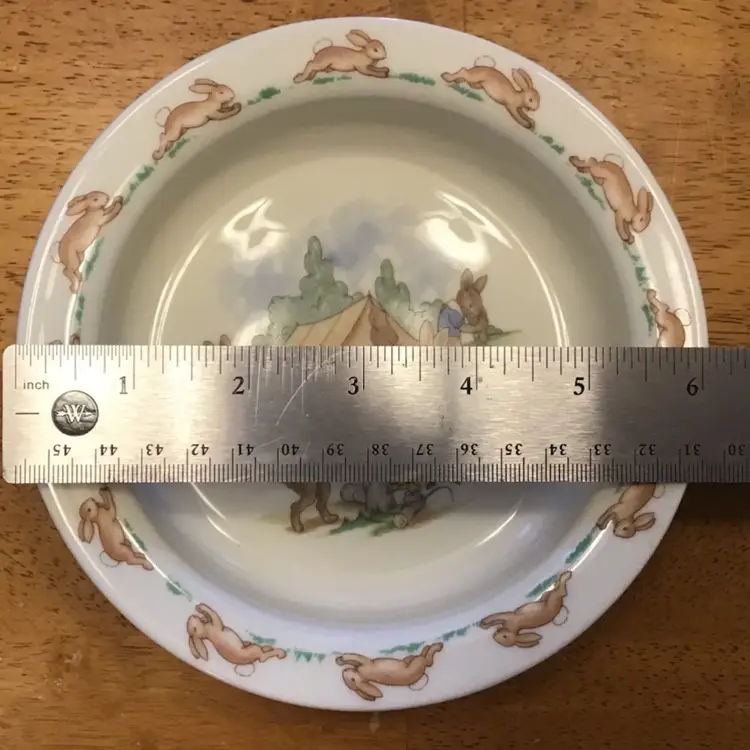 Child’s mug and bowl are in excellent condition. No chips, cracks, or, repairs. Size is in the pictures. See all pictures as they are an important part of the description.