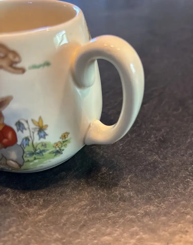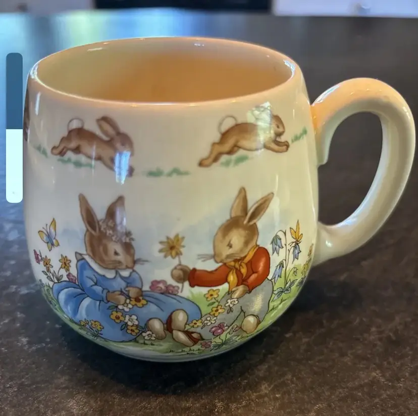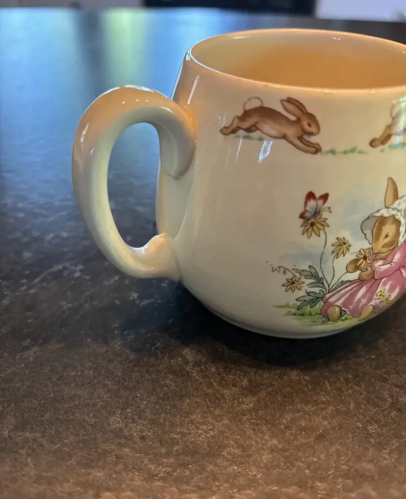 The cup is a beautiful white color and was made in the United Kingdom. It is a perfect choice for those who love collectibles and kitchenware. This mug would be a great gift for anyone who loves bunnies or vintage items. See my other Bunnykins items