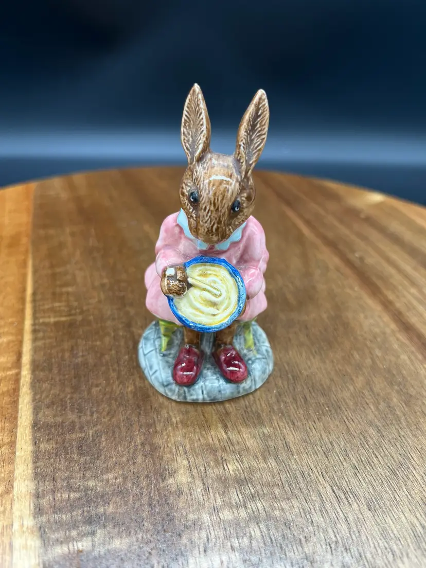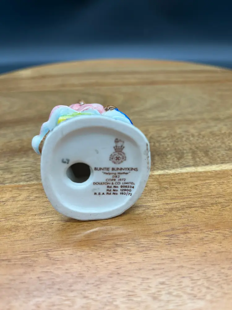 Vintage Royal Doulton Buntie Bunnykins "Helping Mother" Figurine Anthropomorphic Bunny Easter Decor Bunnykins characters, based on Beatrix Potter's beloved stories Made in England, 1972 Excellent condition 3.5" tall, 2" wide