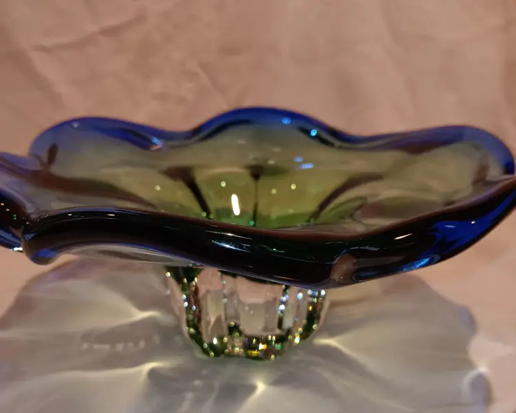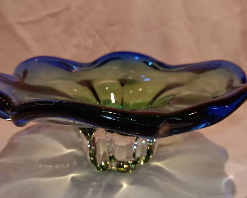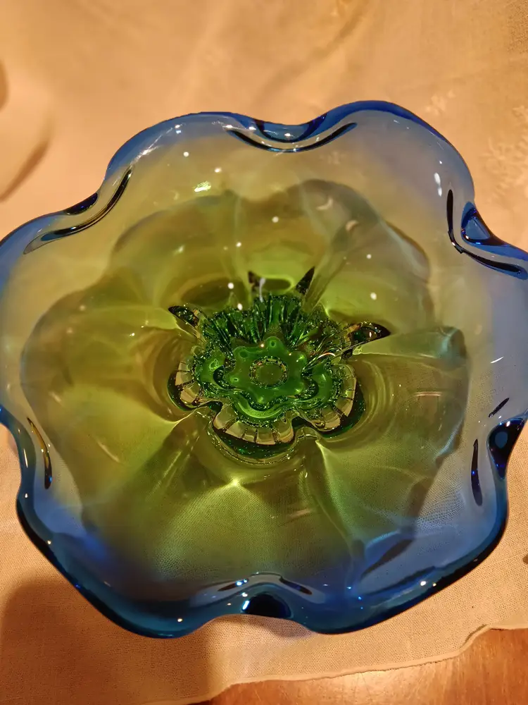 Beautiful colors on this statement piece. Excellent condition. No chips or cracks. Measures 10" across and 4" tall.