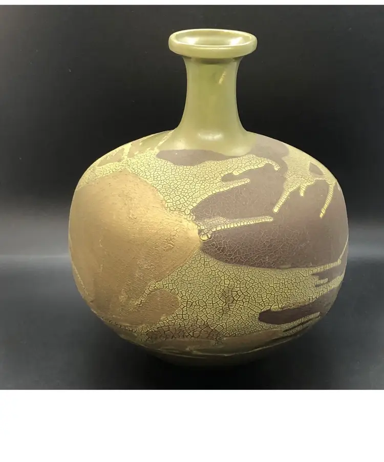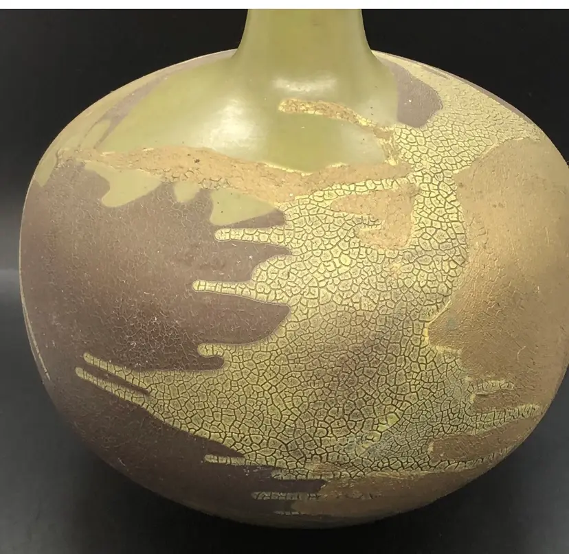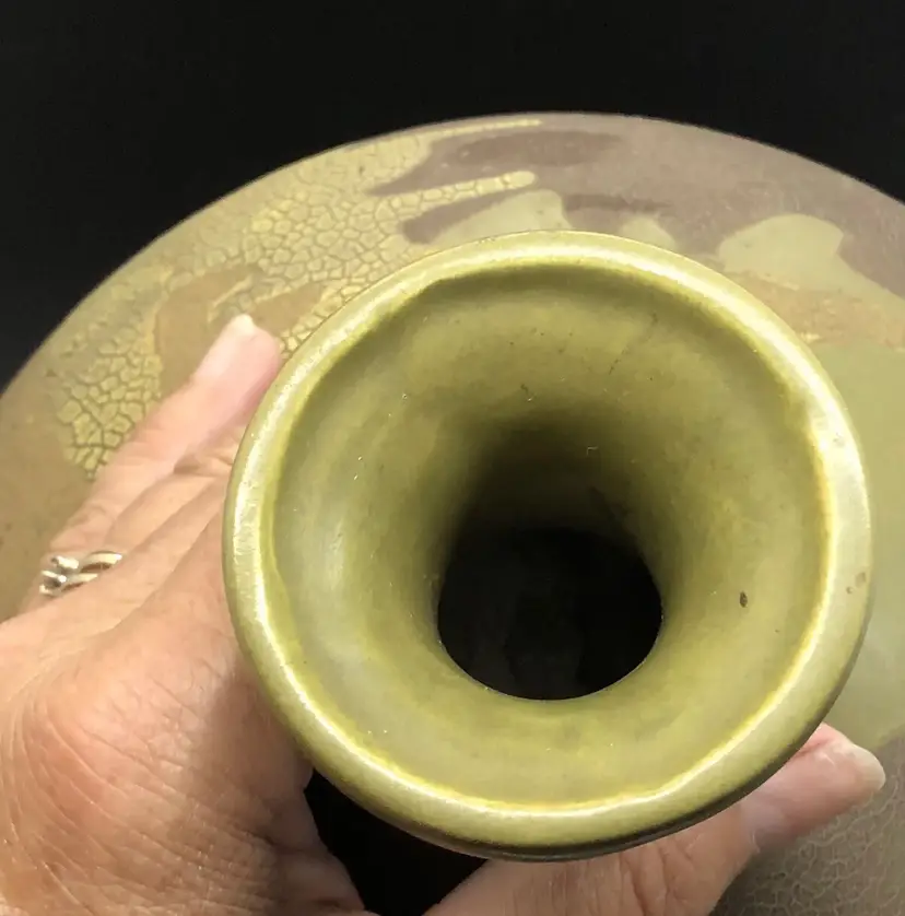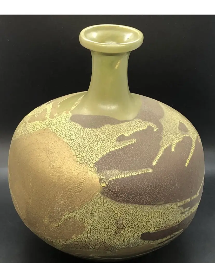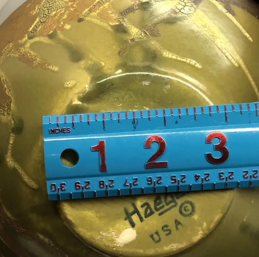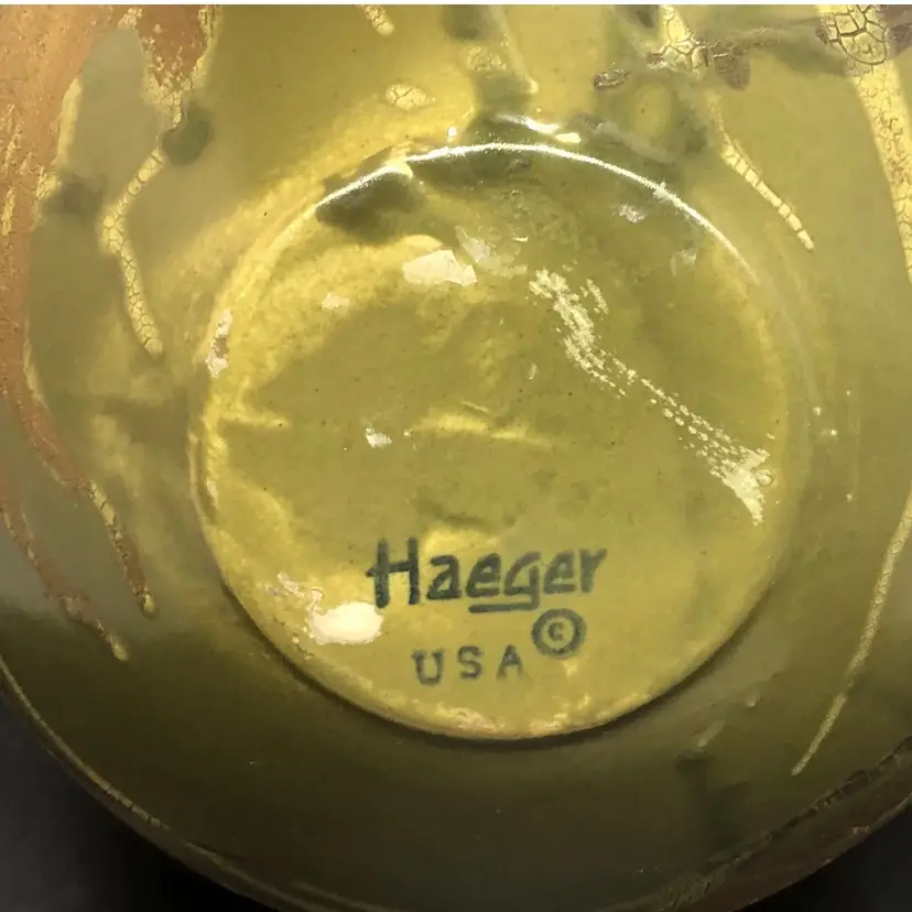 This handmade vase is signed by the artist and showcases a beautiful ash glaze finish. The printed backstamp confirms its origin in the United States, making it a unique piece of art pottery. Whether you are a collector or just love vintage pieces, this Haeger vase is a must-have. This Vase in in great condition. No chips, cracks or scratches. It has natural marks from the making of the HAEGER vase. Please check photos. Any questions please text me. Thank you.