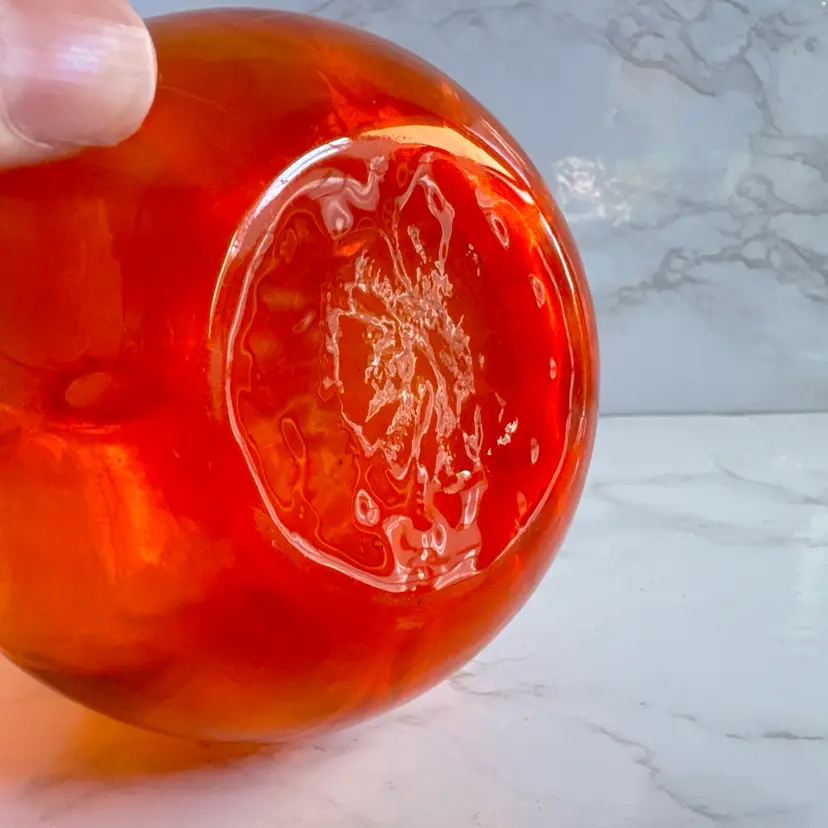 Excellent vintage condition with no chips or cracks. Very hard to find. Has orange cadmium glow under black light. 4”dia x 4-1/4”h