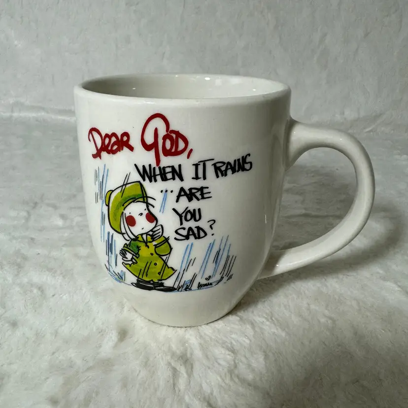 Vintage Royal Norfolk Coffee Mug Dear God “When it rains are you sad?”