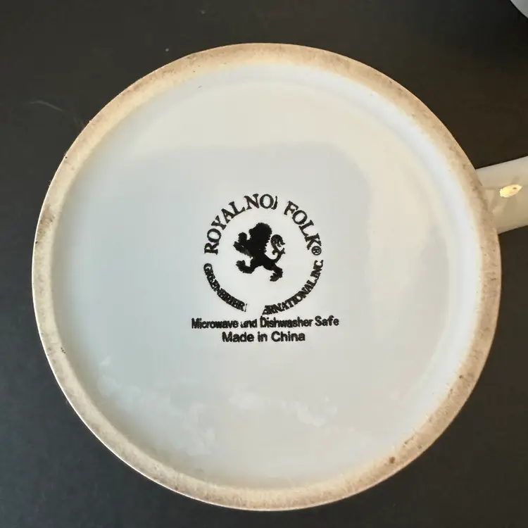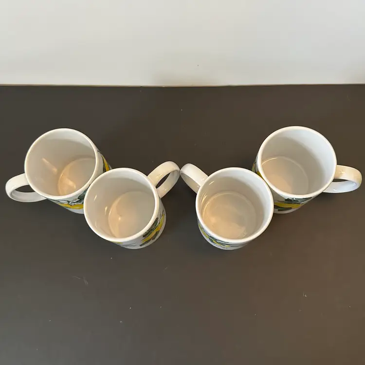 These items are Royal Norfolk Lemon pattern coffee mugs, typically sold in sets.