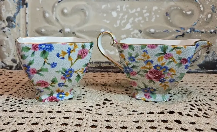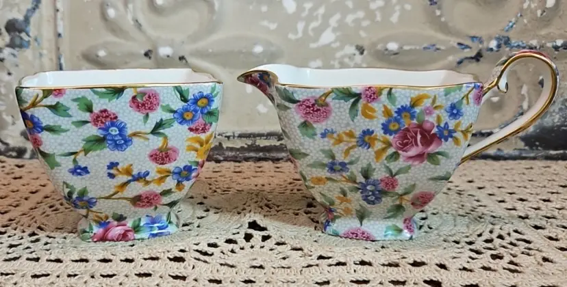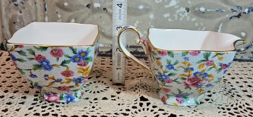 This Royal Winton sugar and creamer set is in excellent, used condition, with no appreciable chips, scratches or cracks. Measurements are depicted in the pictures of the item or listed in the description of the item. Please review the photos, as they are part of the item description. Please note that any props used in the photos are not included in the purchase, unless otherwise indicated.