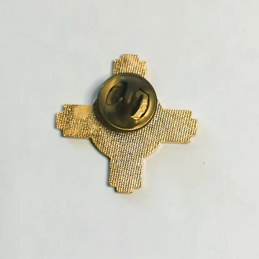 • Enamel finish • Zia symbol design • Gold-tone back • Secure butterfly clasp • Measures approximately 1 inch