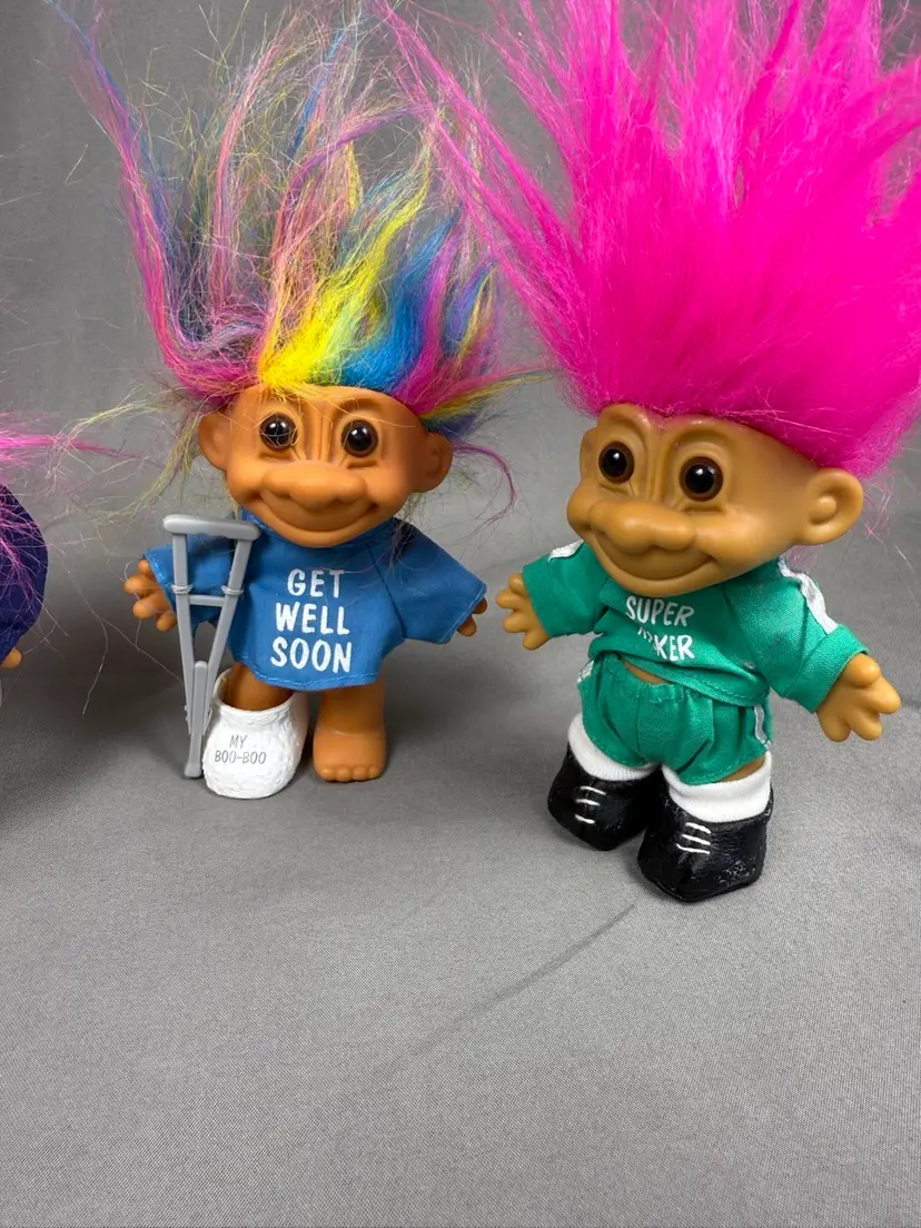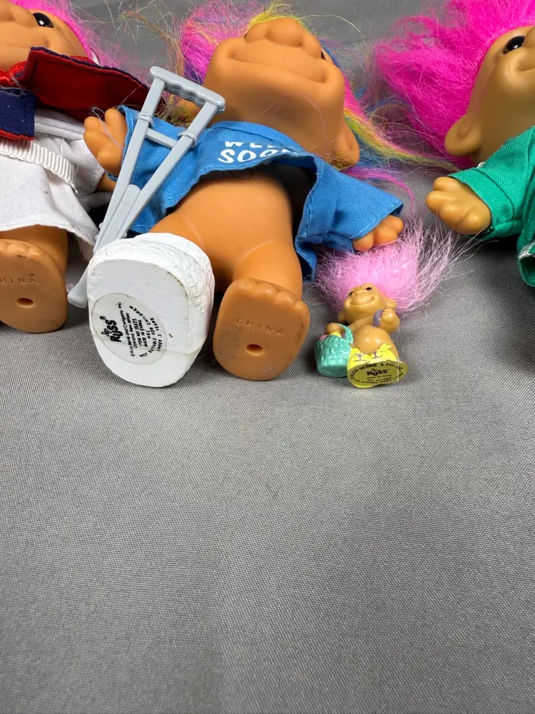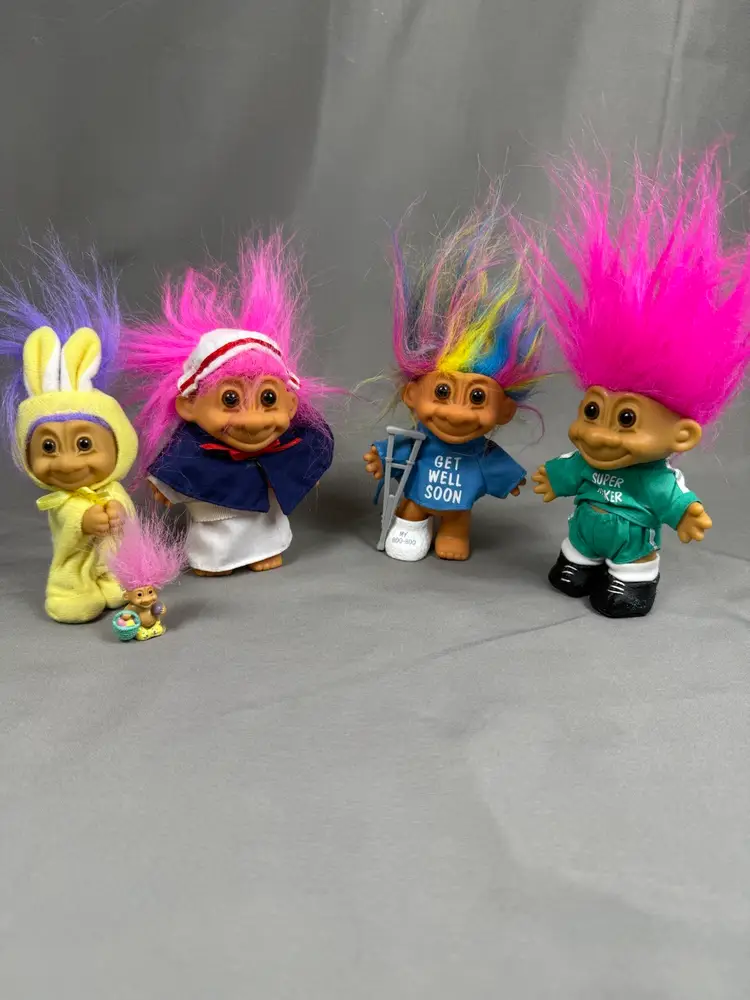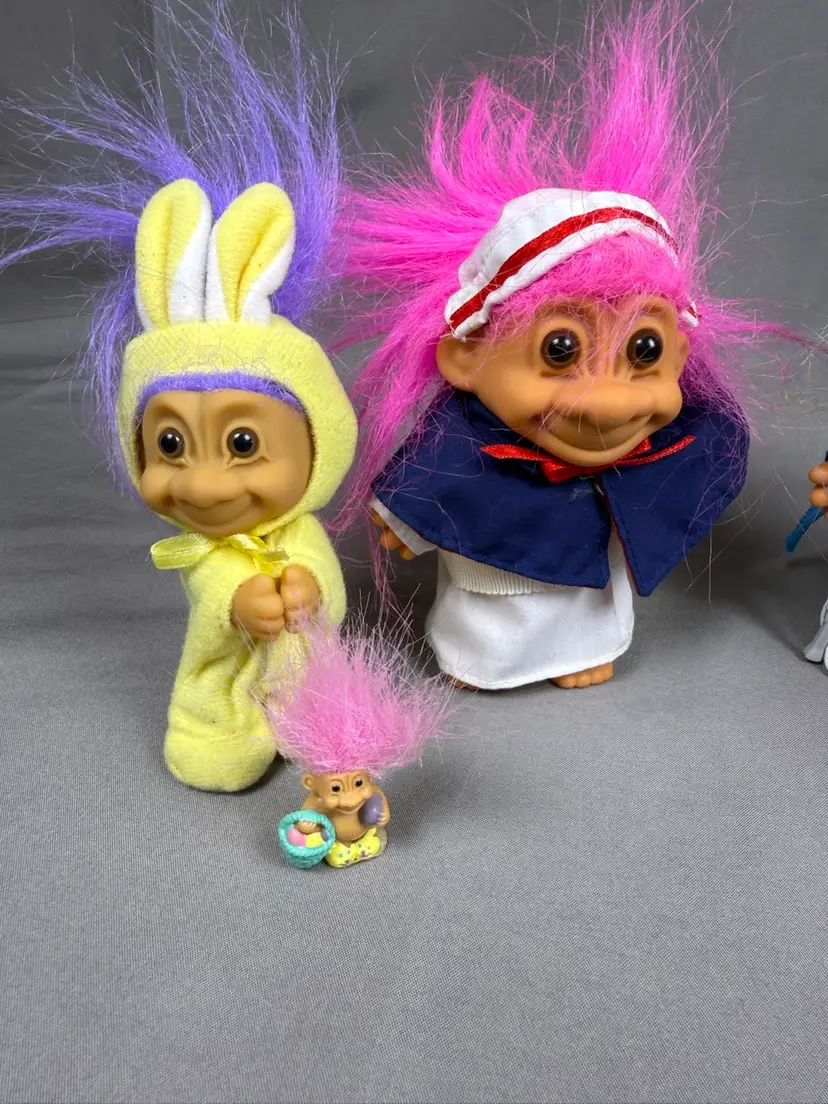 Vintage Mini Easter Troll Holding Egg Baskets Wearing Bunny Slippers