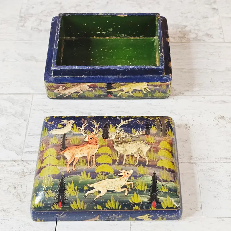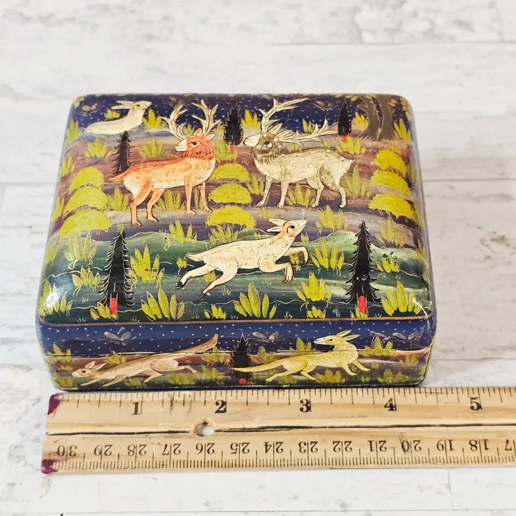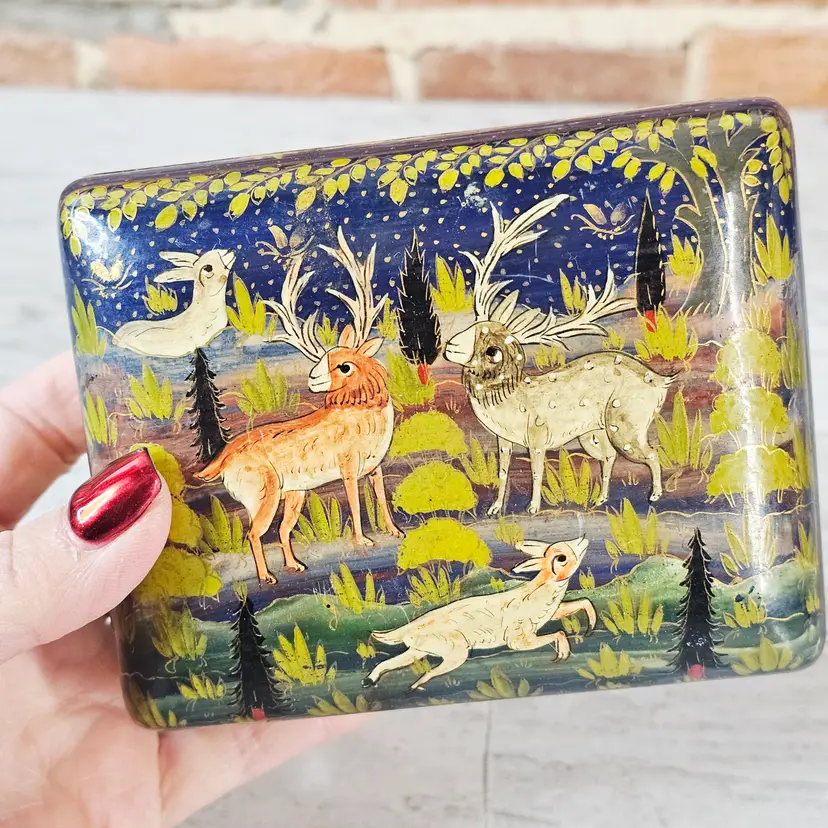 ๐จ Each of these boxes was traditionally hand-painted by Russian artists trained in miniature iconography, making no two exactly alike โ this one radiates storybook charm with its deer and woodland creatures.