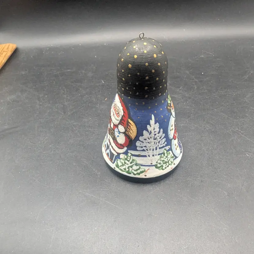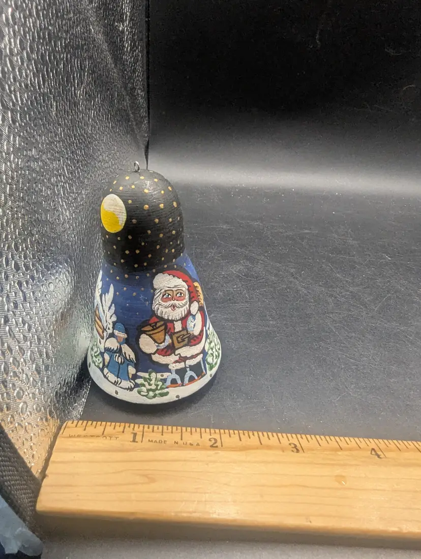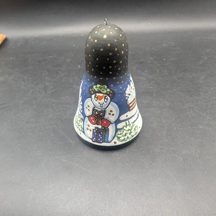 This is a lovely Vintage Russian Nesting Doll Shape Christmas Ornament Signed Dated Hand Painted Santa and Snowman. No chips or cracks. Please see all pictures for details and measurements.