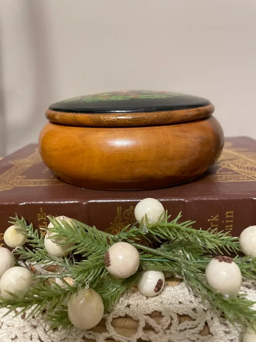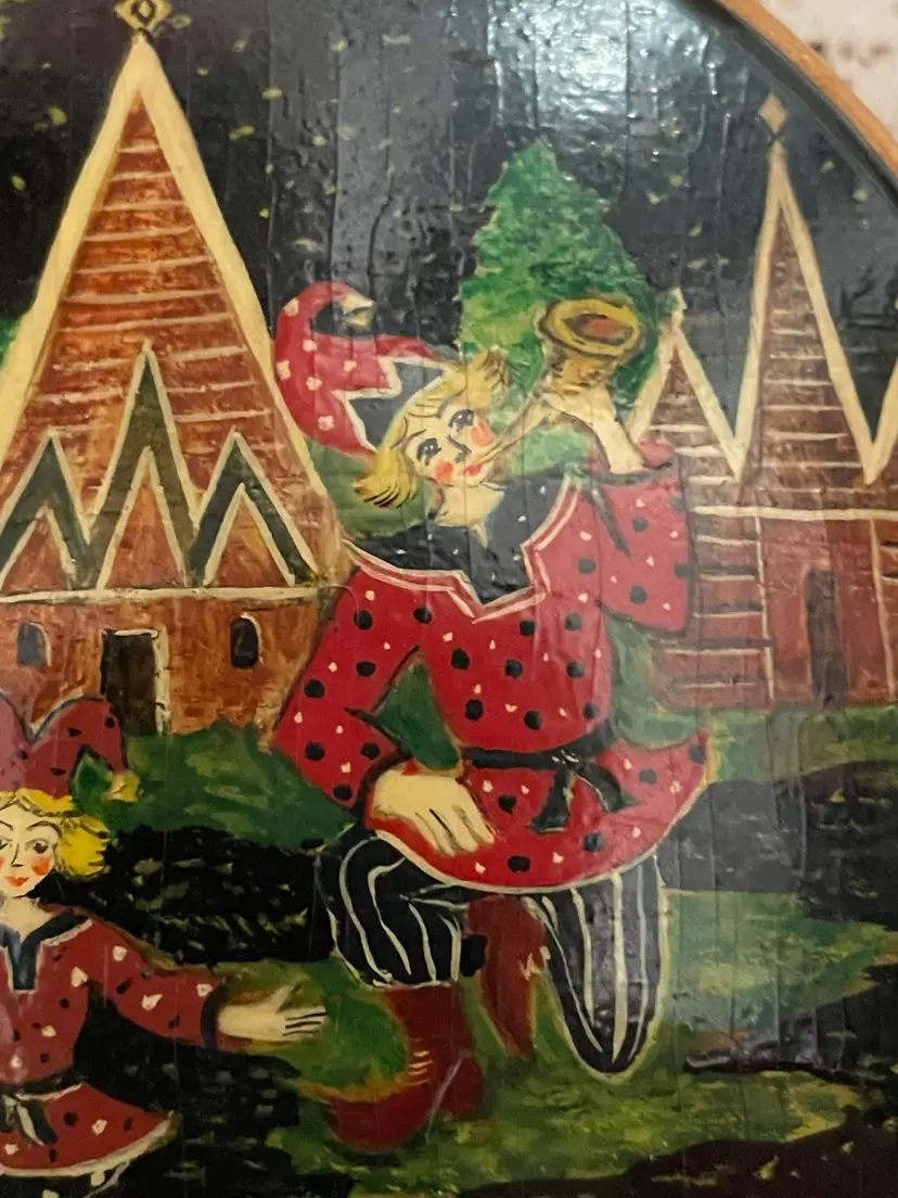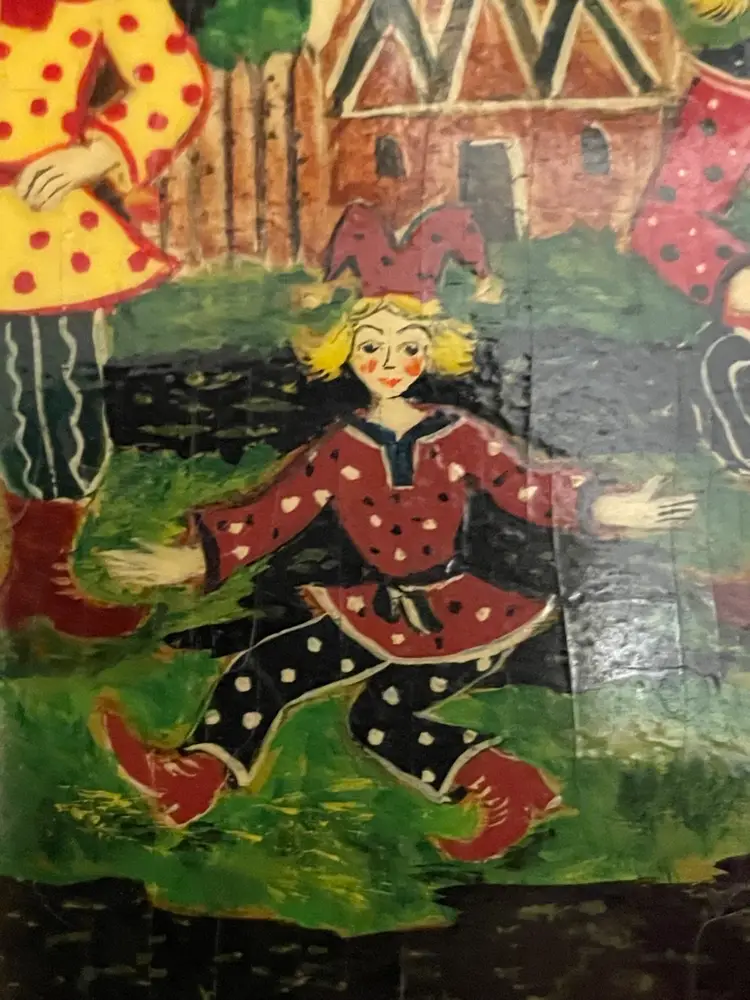 Great vintage condition Russian folk scene Paint has very slight crazing 5” wide x 2” tall 0001225