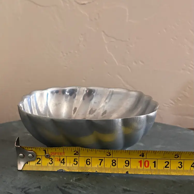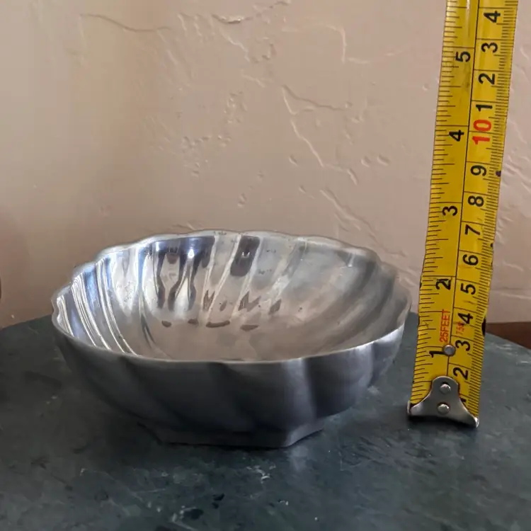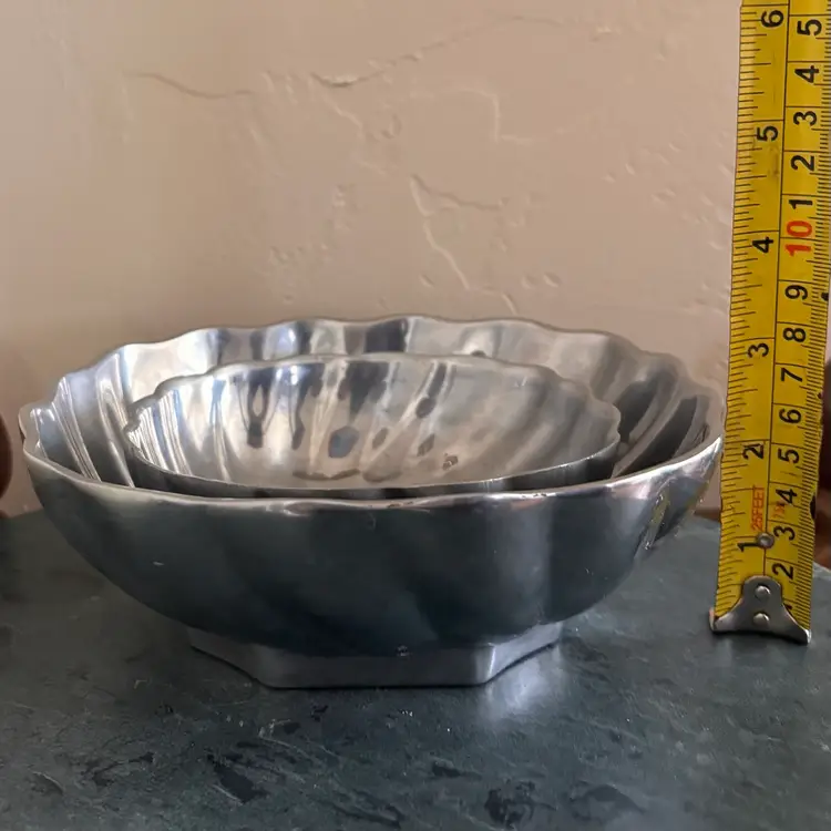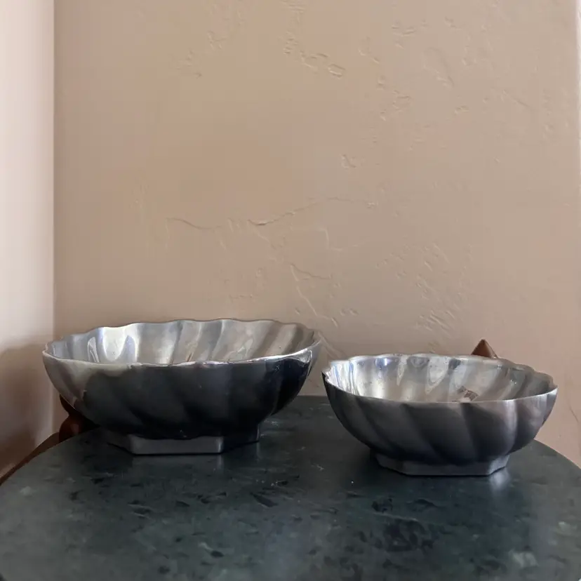 Pretty pewter food safe serving bowls 3 "tall x 6" wide, 2"tall x 4"wide Vintage wear and patina as shown- some scratching
