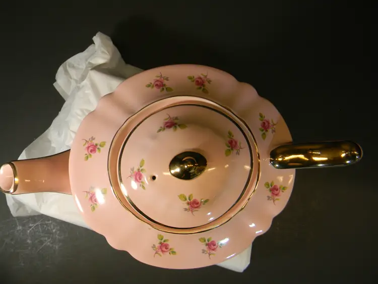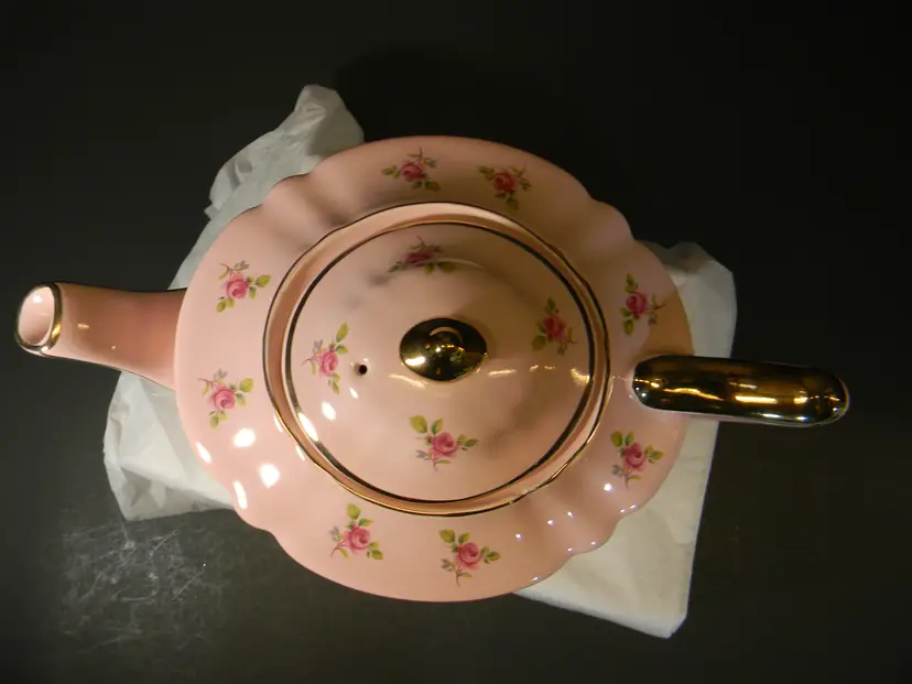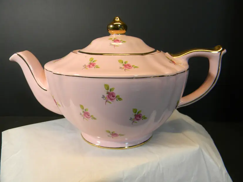 Vtg Sadler Teapot #2353 AB signed? With pink Chintz roses and gold trim Made in England Does show wear being vtg Used condition Please see all photos before purchasing Measurements are in the photos
