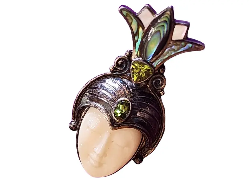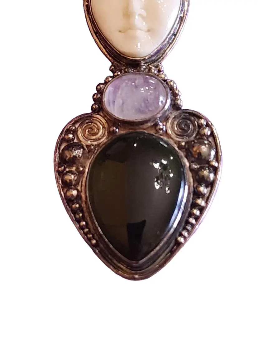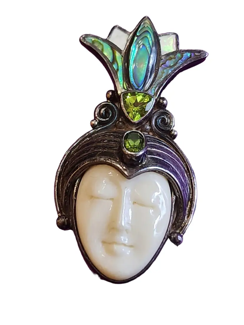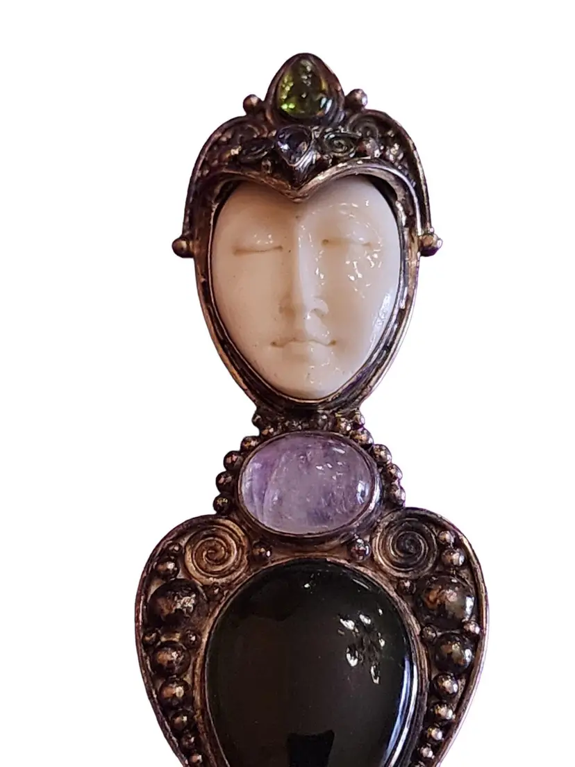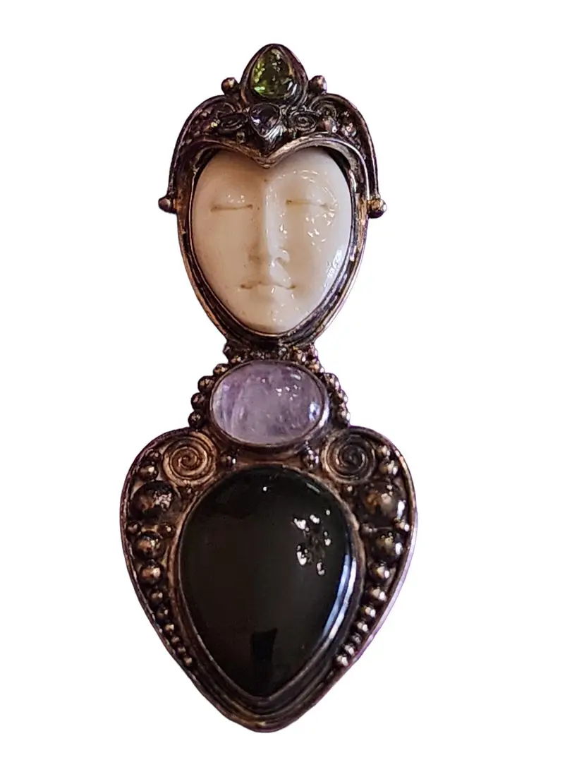 Vintage Sajen 925 Sterling Huge Semi Precious Goddess Pendant Brooch (A2119)
