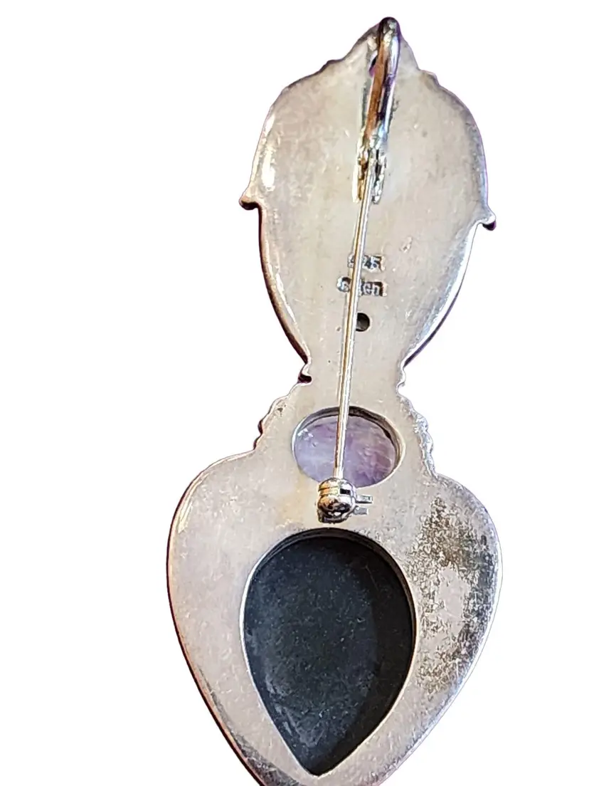 Size: 3.25" Material: Sterling silver, Moonstone and other semi precious stone Condition: Very good vintage; Silver could use some polishing. Circa: 1960s Signed: Sajen 925