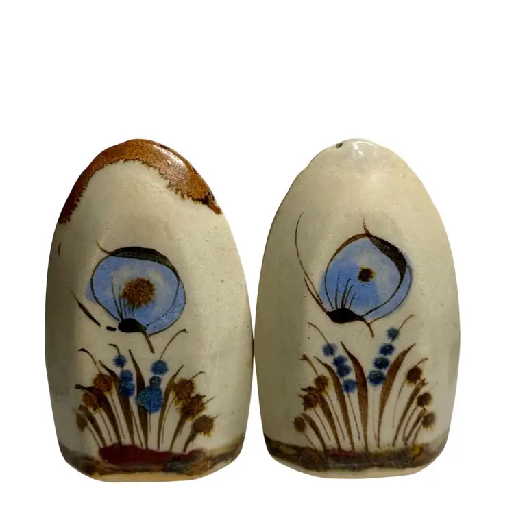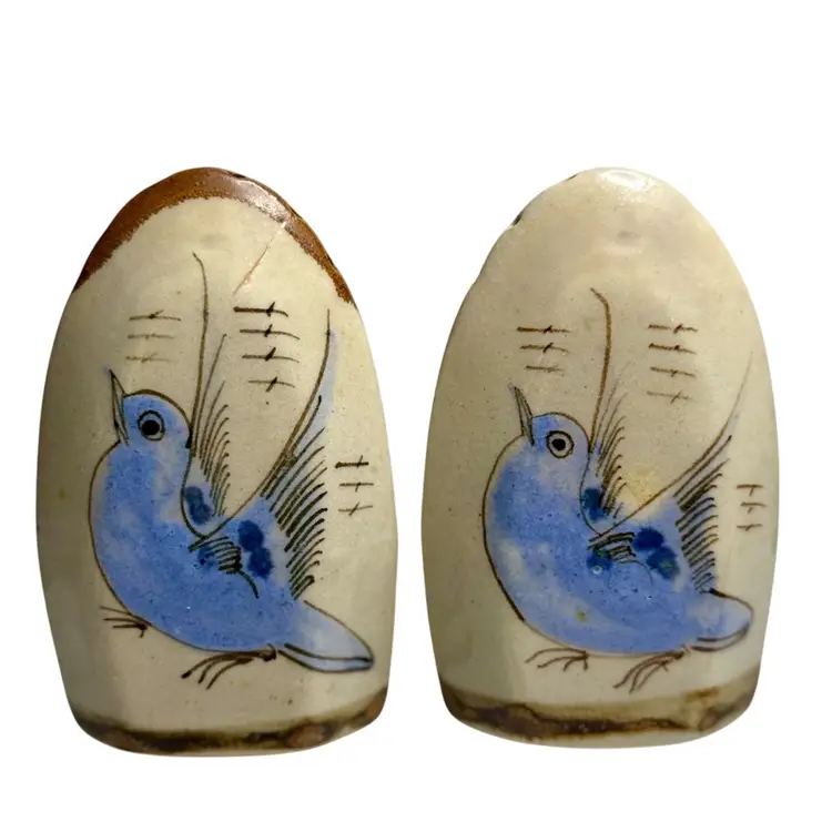 Vintage Ken Edwards Tonala Mexico Pottery Salt Pepper Shakers Birds Signed.