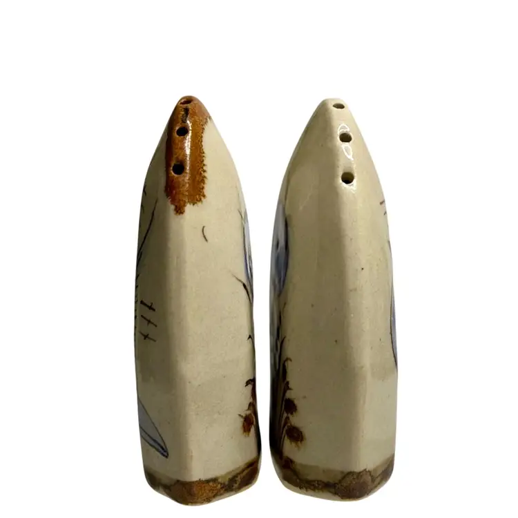 Condition: Two manufacturing conditions. Salt has a spot by the bird missing glaze. Pepper has a scratch that was glazed over. Pictures show close up and distant views.