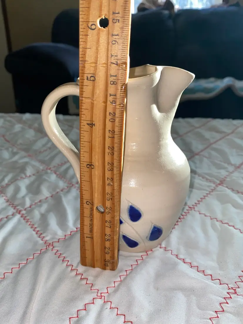 Very pretty salt glaze pottery pitcher. No cracks or chips and it is unmarked.