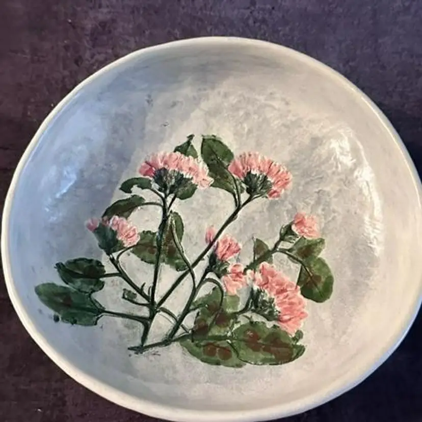 You are receiving a vintage salt marsh bowl. Hand painted. Holes on back for hanging. S. Dartmouth Ma. Condition is show in the photos. No chips or cracks. Measures 7.5" wide