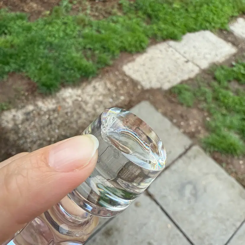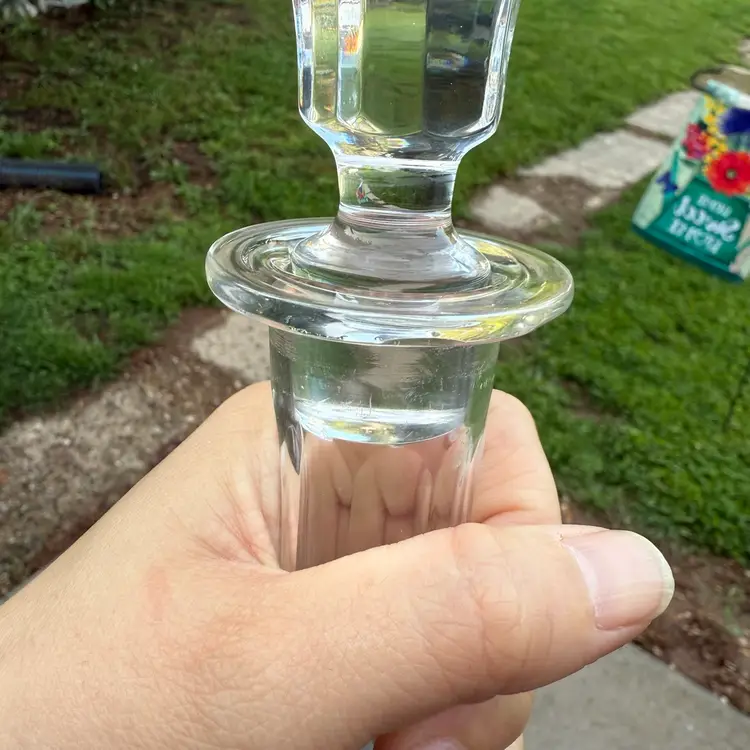 One area of wear, few bubbles within the glass and a chip on the inside of the stopper