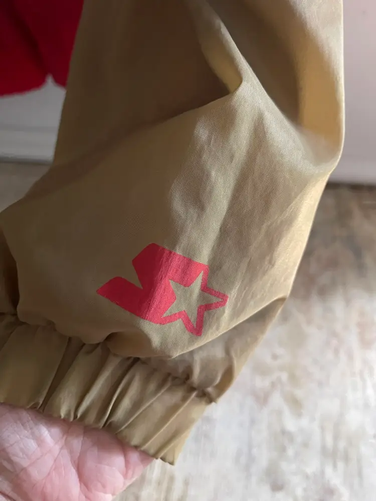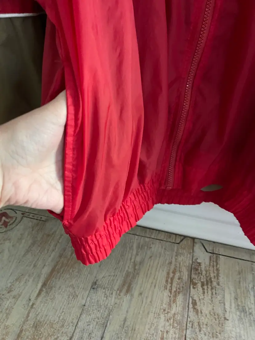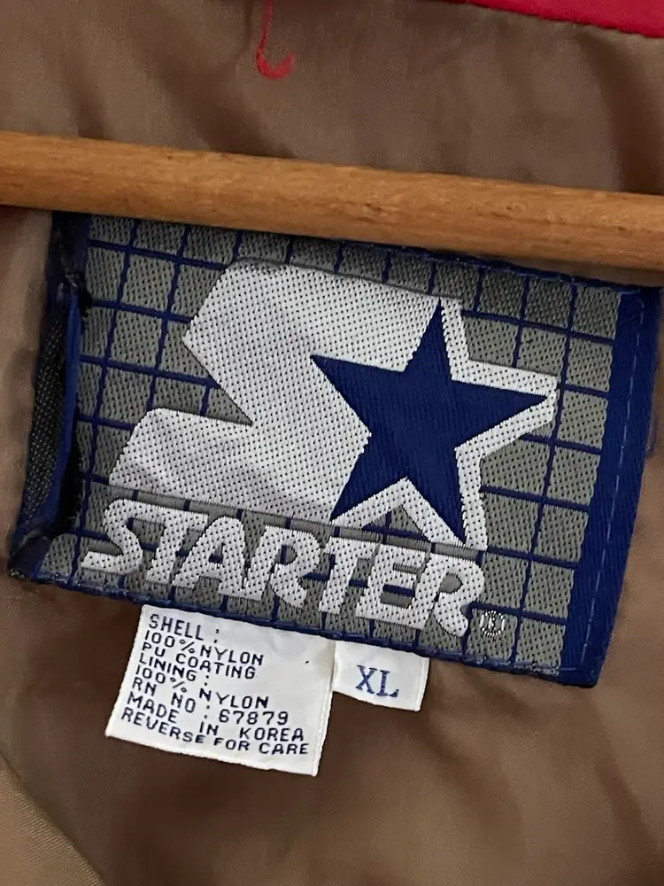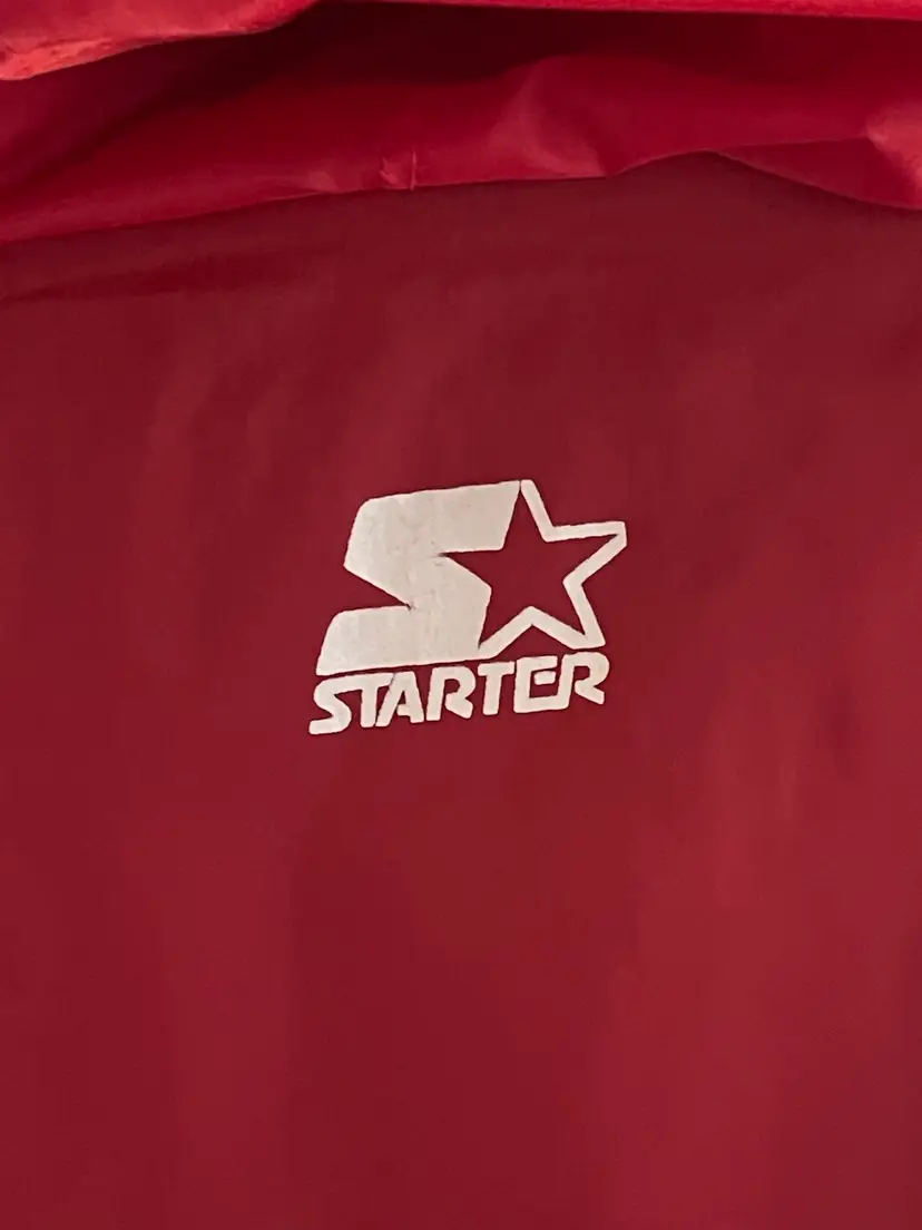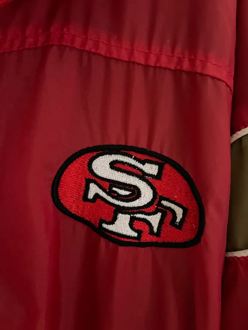 Vintage San Francisco 49ers Starter Jacket (SEE CONDITION and PHOTOS) 90s/Early 00s Windbreaker Mens XL Red/Gold Spell Out on Sleeve Hood Starter Logo on Sleeve and Back 49ers Patch on Chest Plastic Zipper with Metal Pull Front Pockets Lightweight Toggle Hood