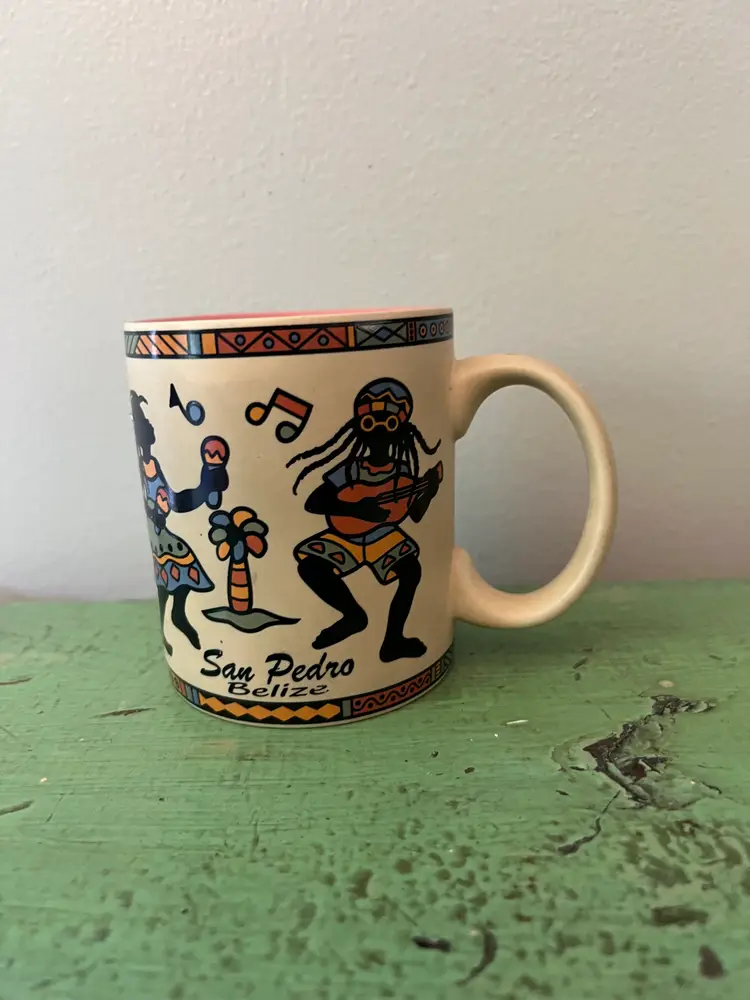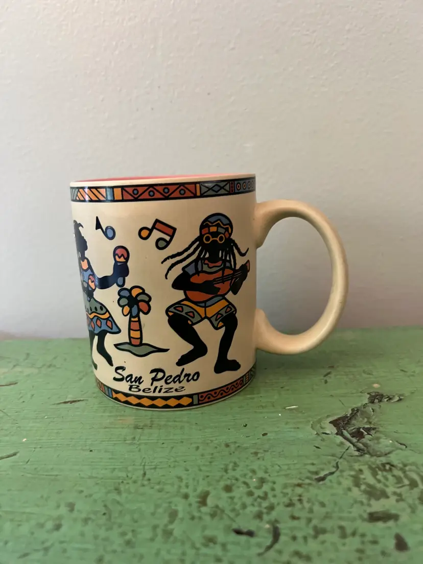 Souvenir ceramic coffee mug from San Pedro Belize. 3.75" tall Excellent vintage condition.