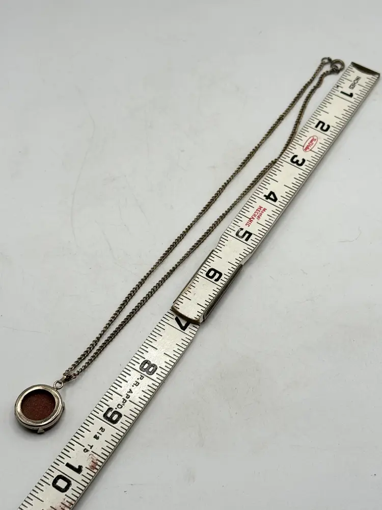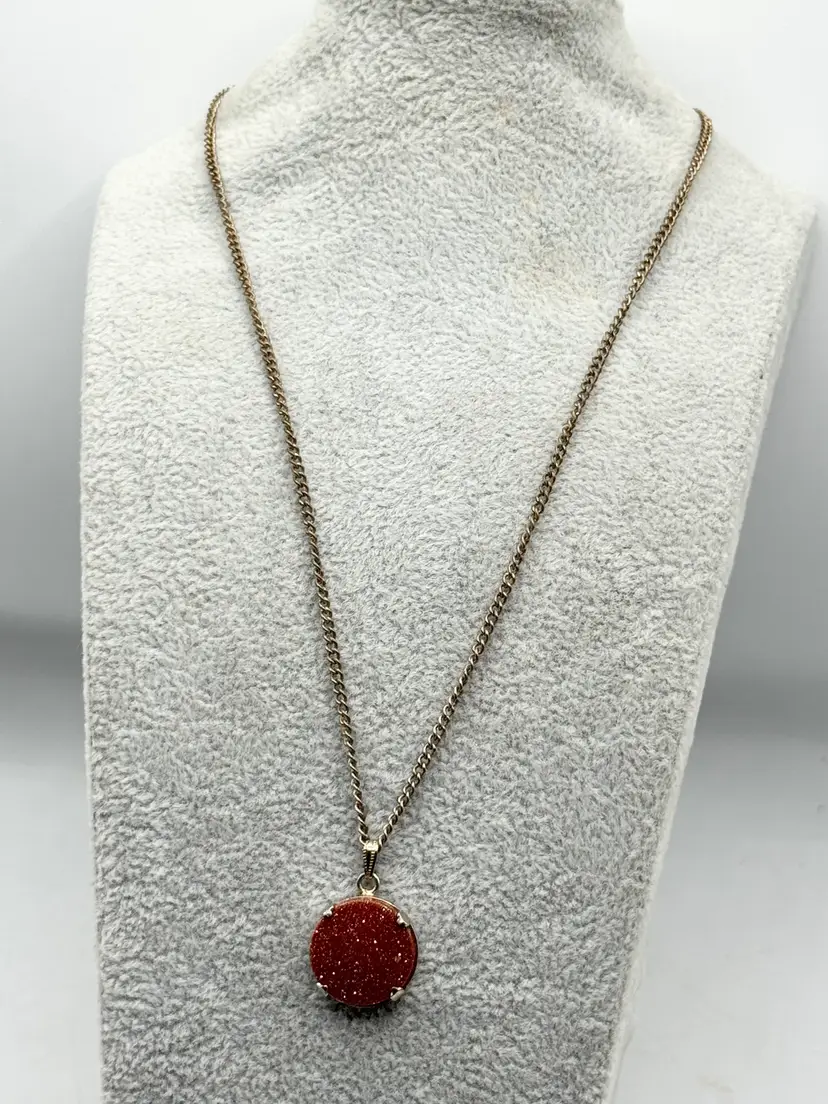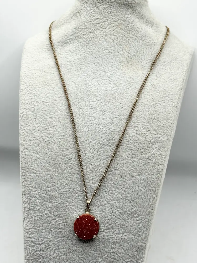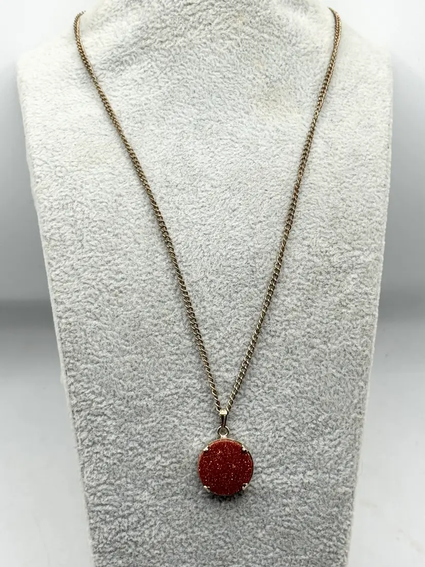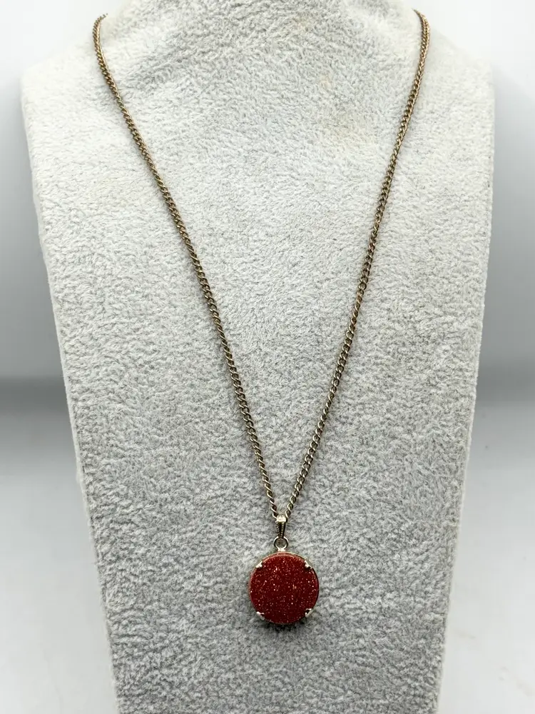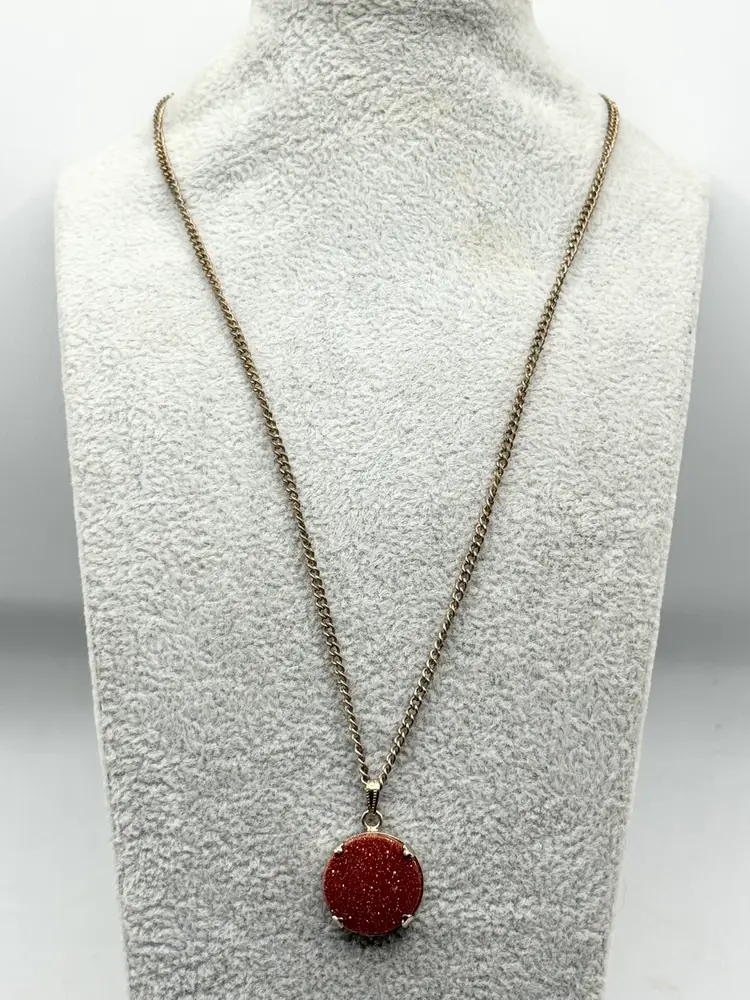 Vintage sandstone stone pendant necklace. Gold tone chain with hanging sandstone stone circle pendant. Vintage Necklace. MN56H.