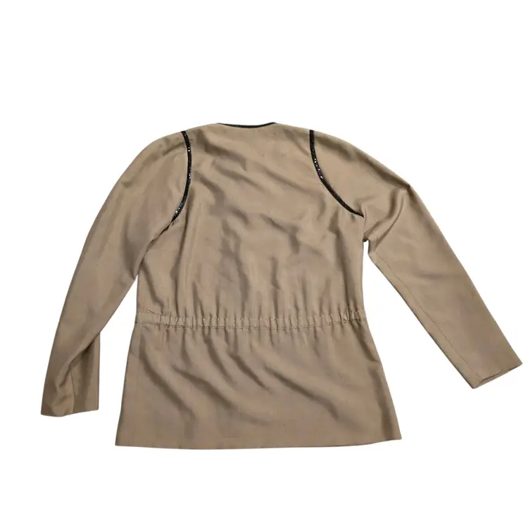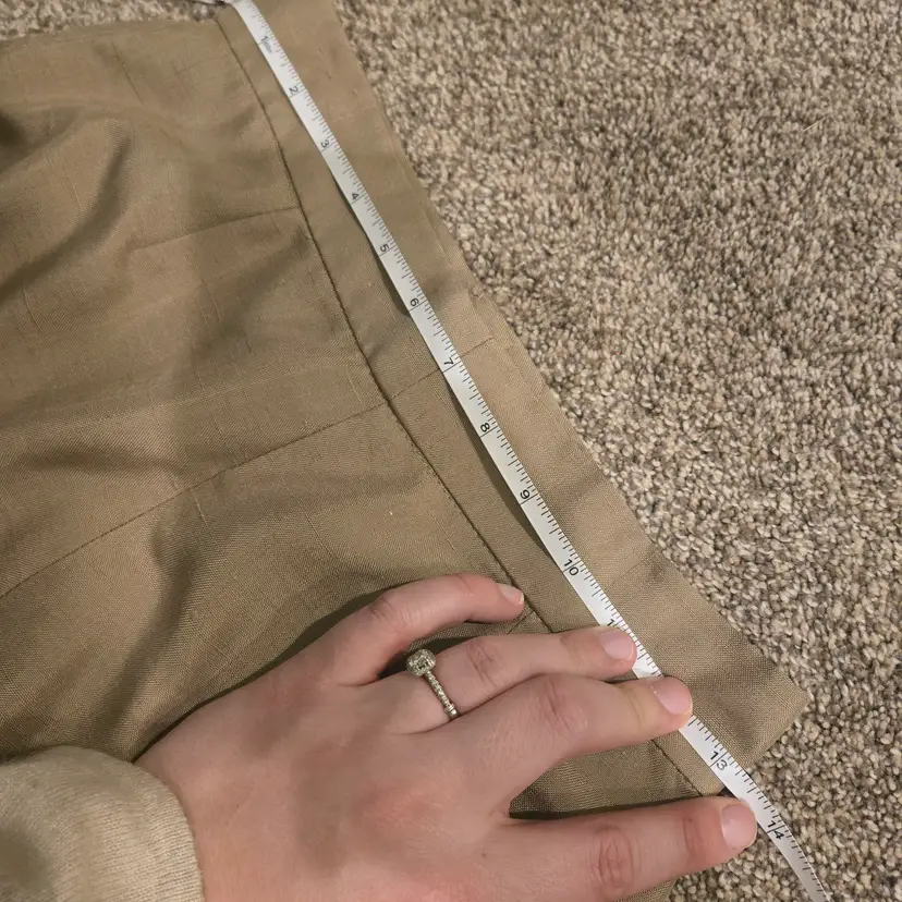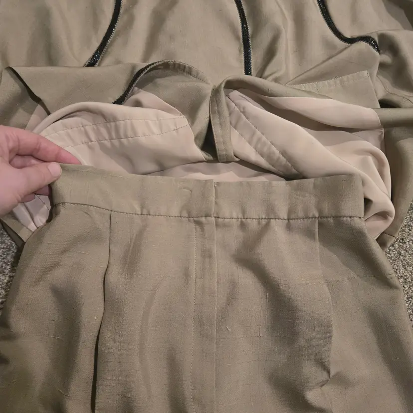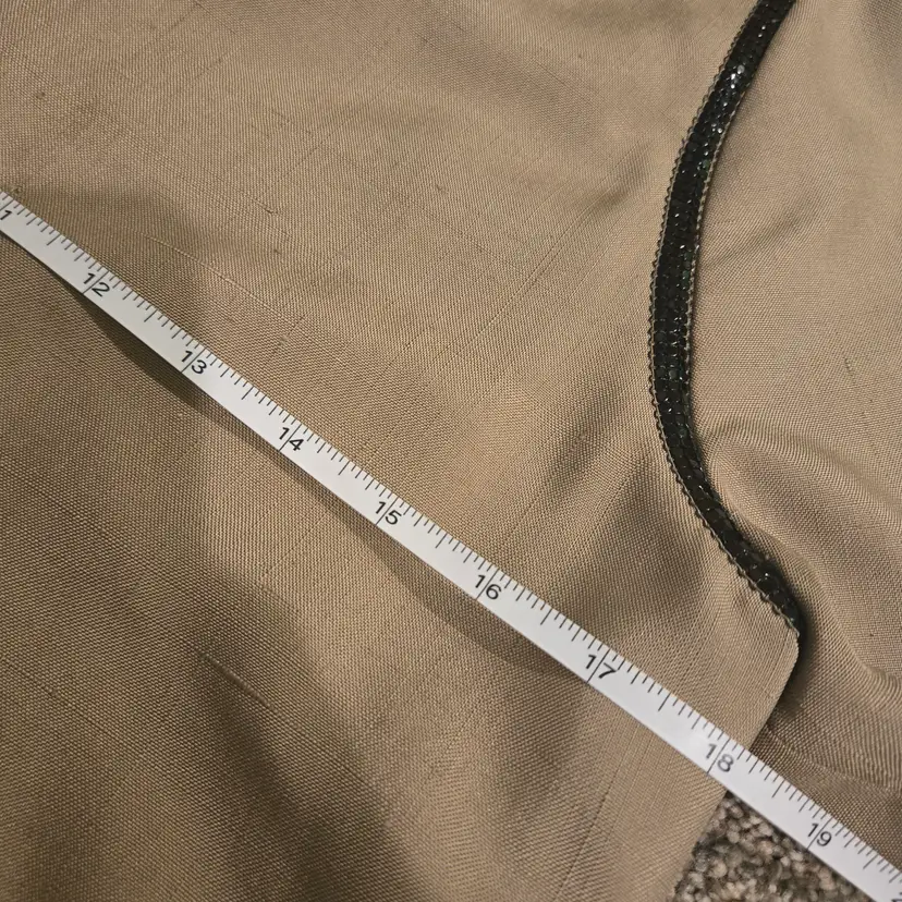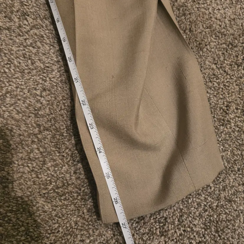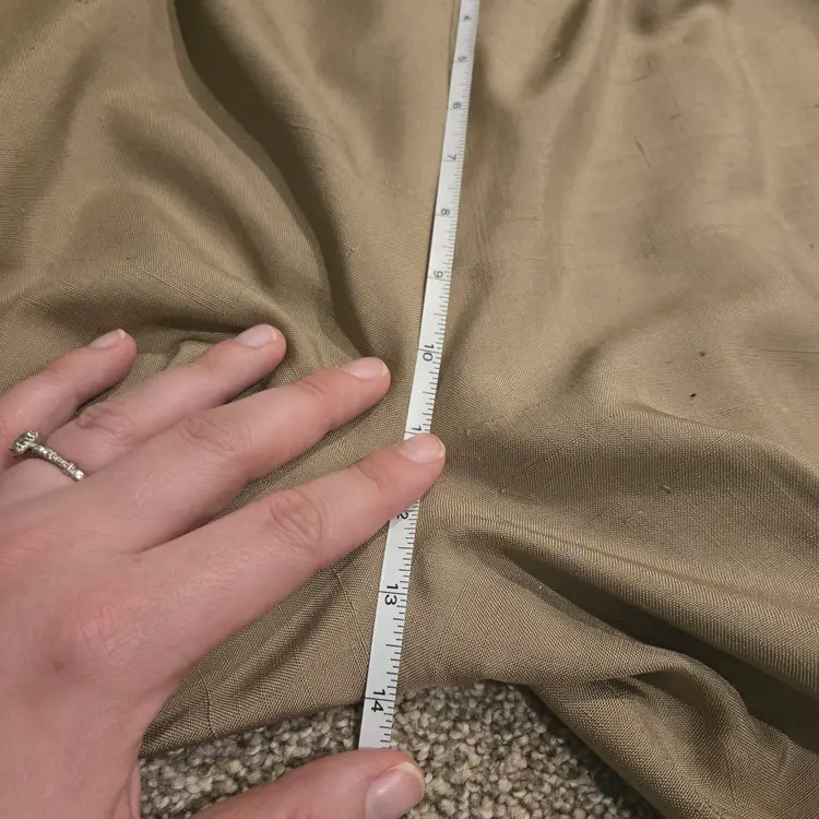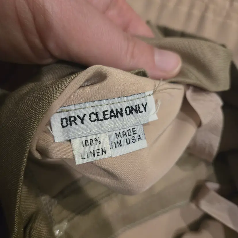 The original owner took out the cinch tie. Otherwise in excellent condition. 100 percent linen. In excellent condition. Very little signs of wear from use. Please see pictures for more details and measurements.