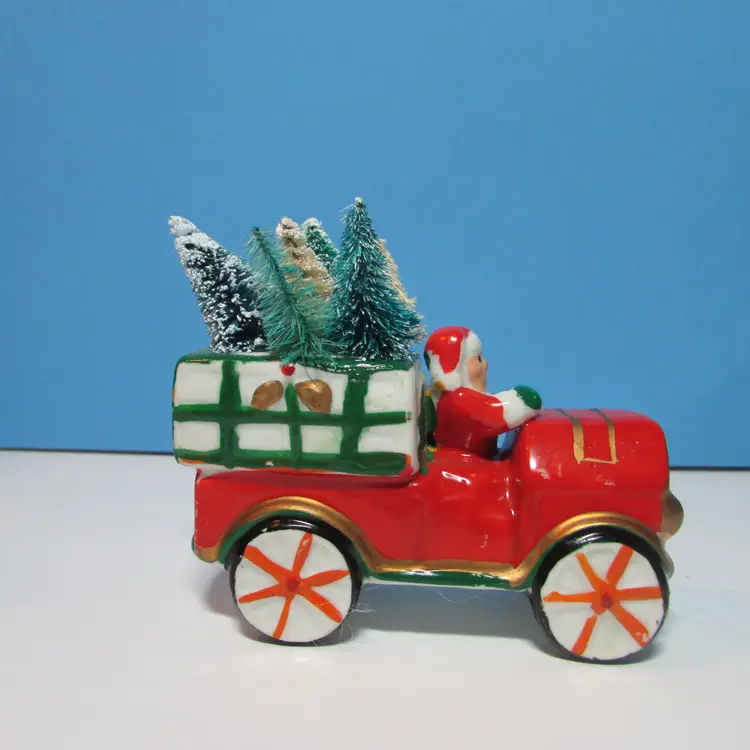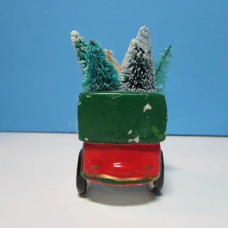 This adorable piece has some wear, but it has been upcycled into a Christmas tree delivery. It is about 5" x 4 1/2" x 2". This is shipped from a smoke free home. Thanks for looking!