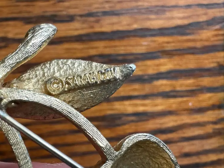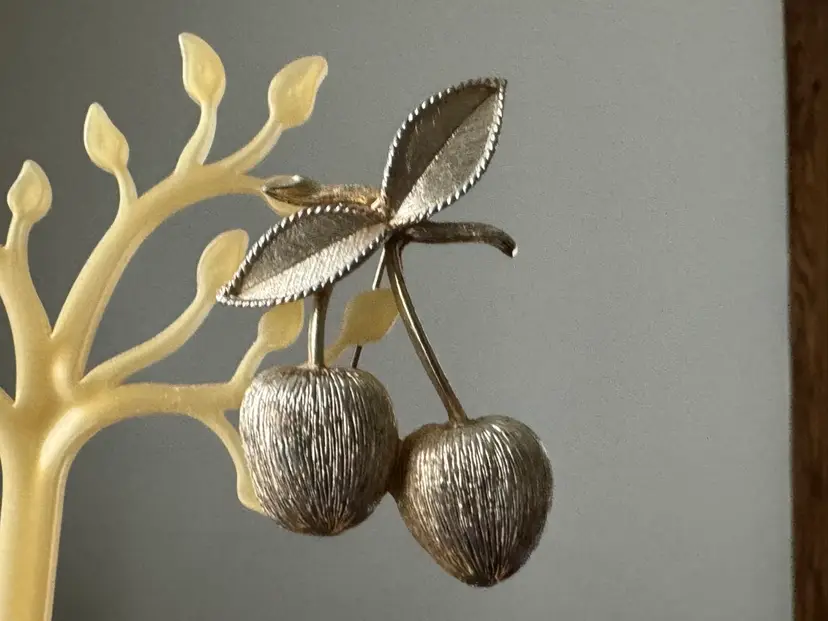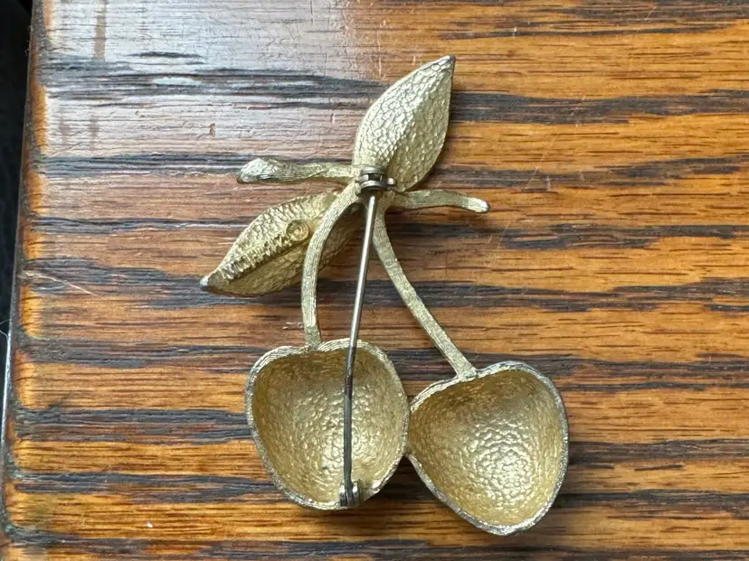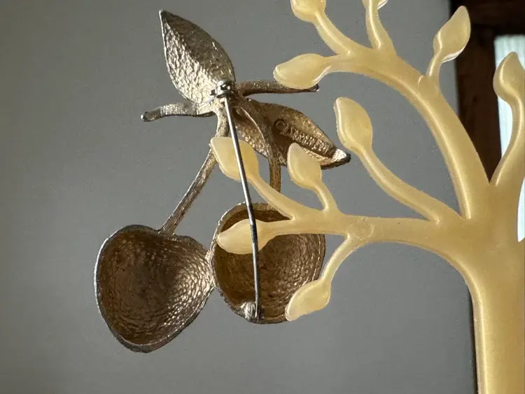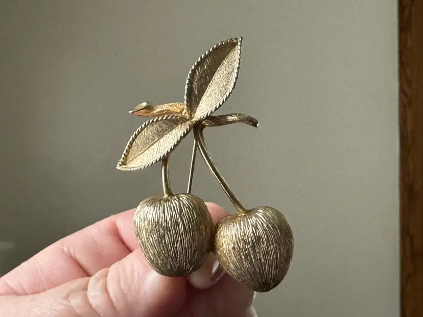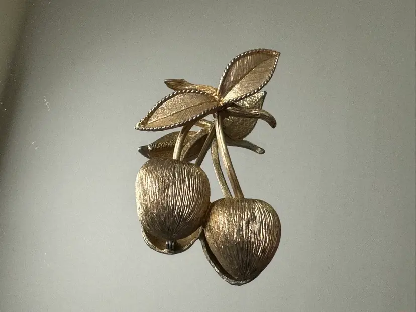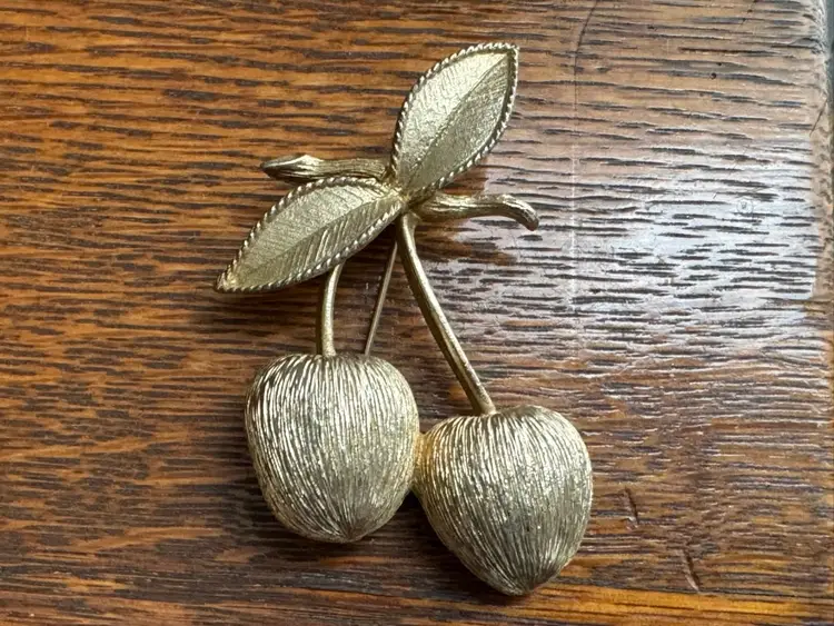 Vintage Sarah Coventry cherry brooch in gold tone metal